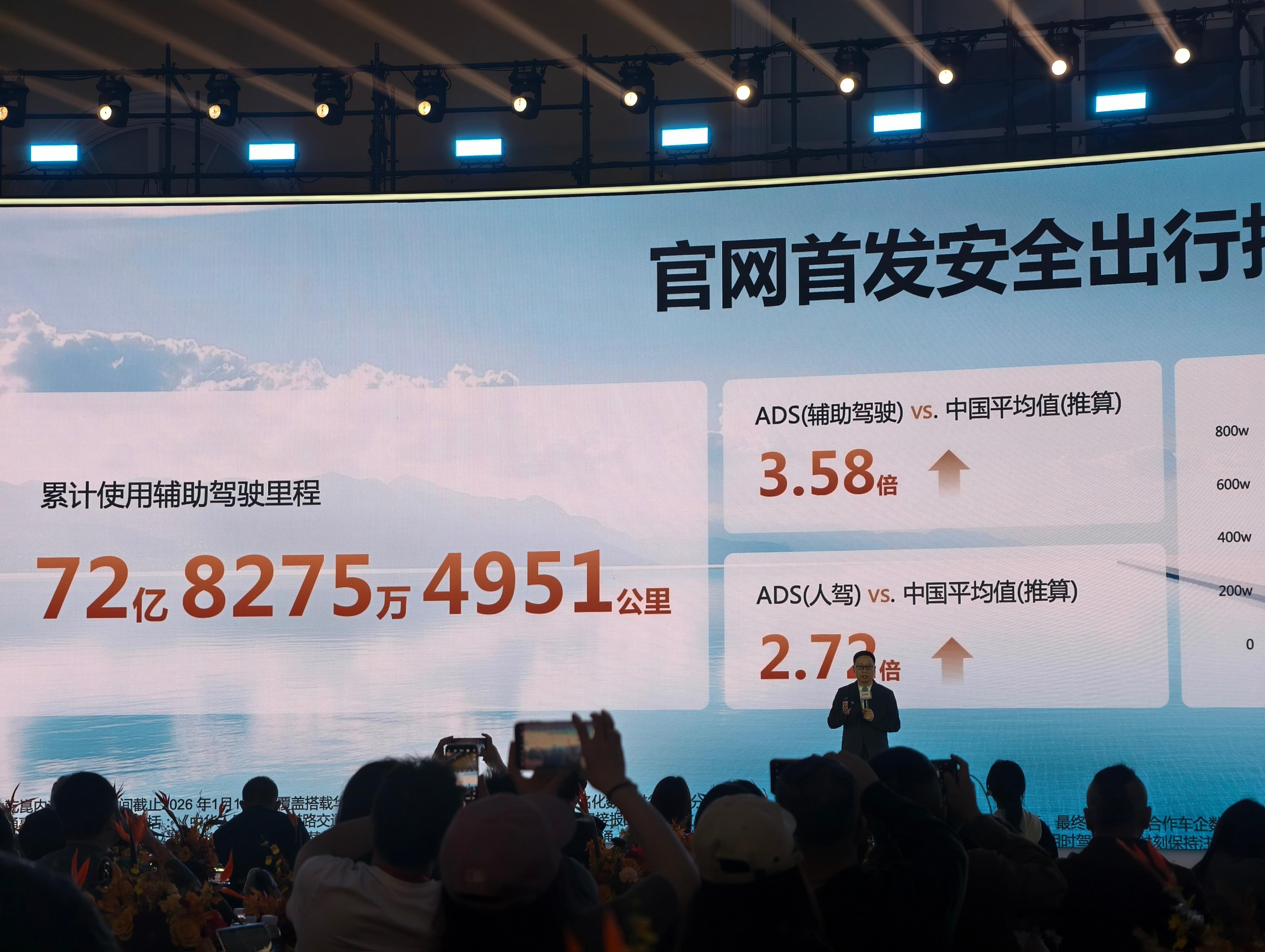 华为乾崑官网即将发布的数据。用户累计使用辅助驾驶里程达到了 72 亿 8275 万 4951 公里,一个有零有整的数据。图二是「平均一次严重碰撞前已安全行驶的里程数」,华为 ADS 是 644 万公里。这里定义「严重碰撞」标准是气囊是否弹开。大v聊车华为乾崑