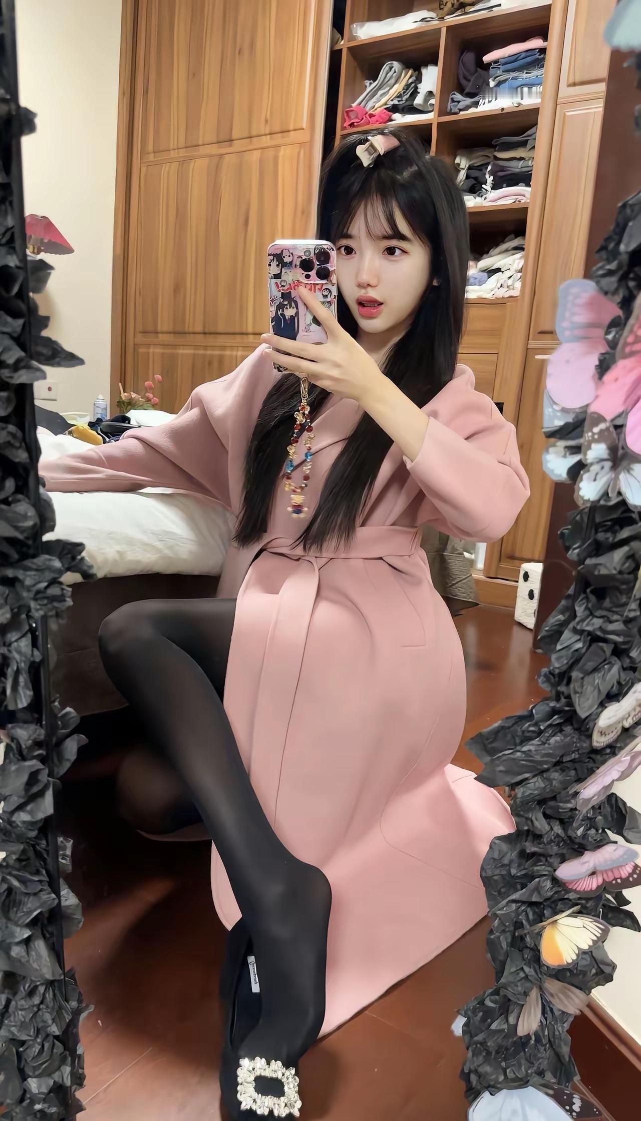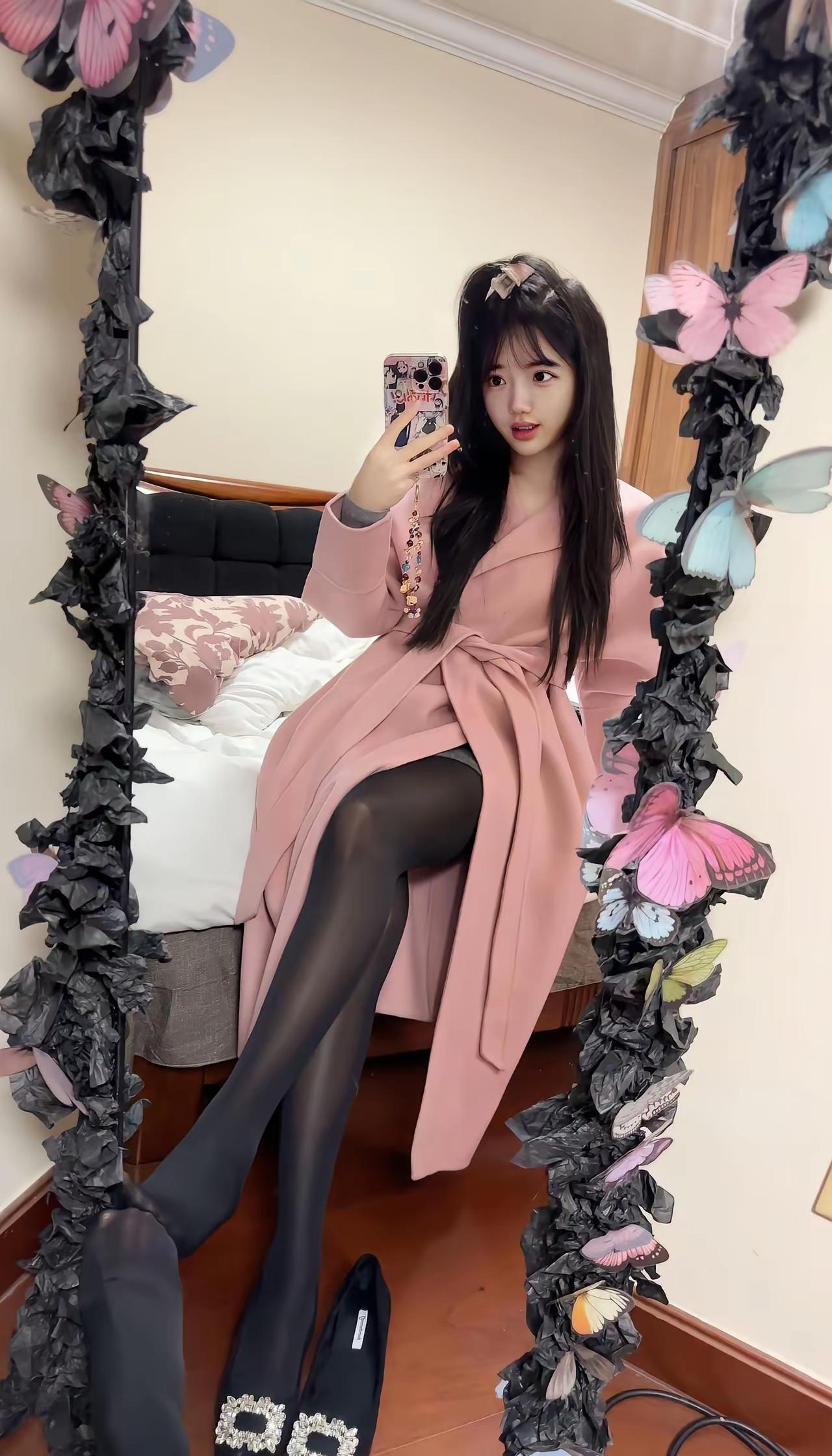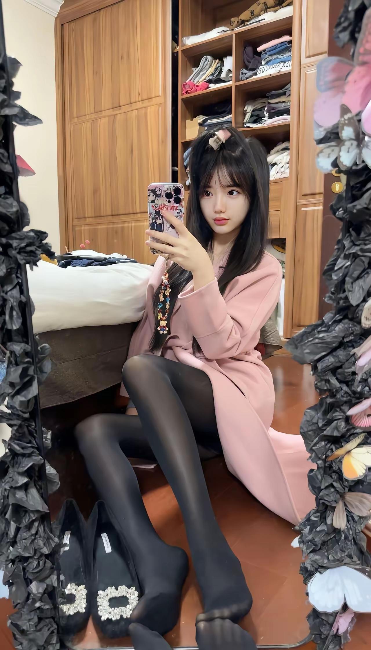 粉色连衣裙搭配黑色丝袜,甜美又优雅!💖👗👠你敢每天发一张随手拍照片吗 下联
