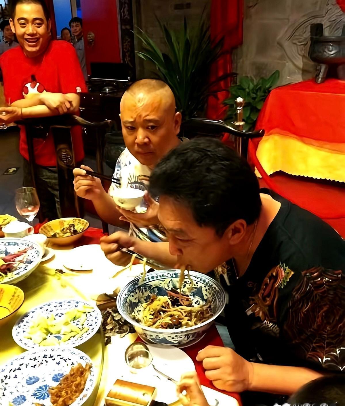 郭德纲盯着于谦的碗,眉头能夹死苍蝇。 冯照洋在旁边憋笑憋到内伤。 这张老照片最近又火了。 于谦捧着青花碗埋头猛吃,面条都快从嘴角溢出来。 郭德纲的表情管理彻底崩盘,眼神里全是“这得吃垮德云社”的绝望。 台上郭德纲拿这事砸挂:“以后食堂改小碗! ” 于谦乐呵呵接梗:“就这点爱好,别拦着。 ” 观众笑疯了。 你看,真正的默契从来不是客套。 是敢把最狼狈的吃相当段子,是敢把最真实的担忧写进包袱。 德云社的饭碗里,盛的从来不只是面。 是十几年同甘共苦的烟火气,是“你尽管吃,我兜着”的江湖义气。 (互动槽点:你见过比这更真实的搭档吗? )