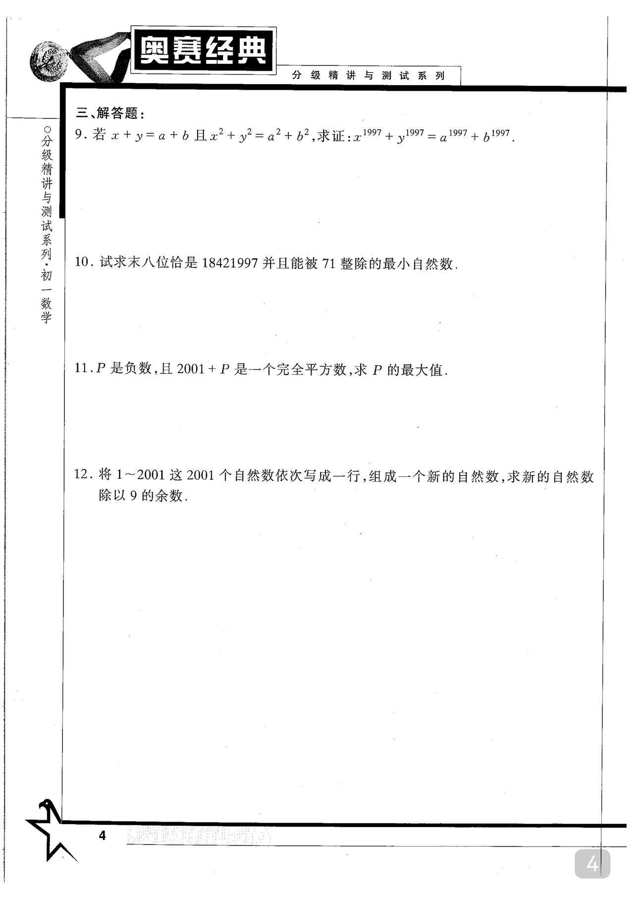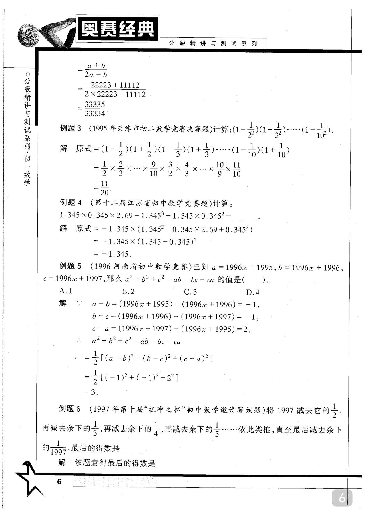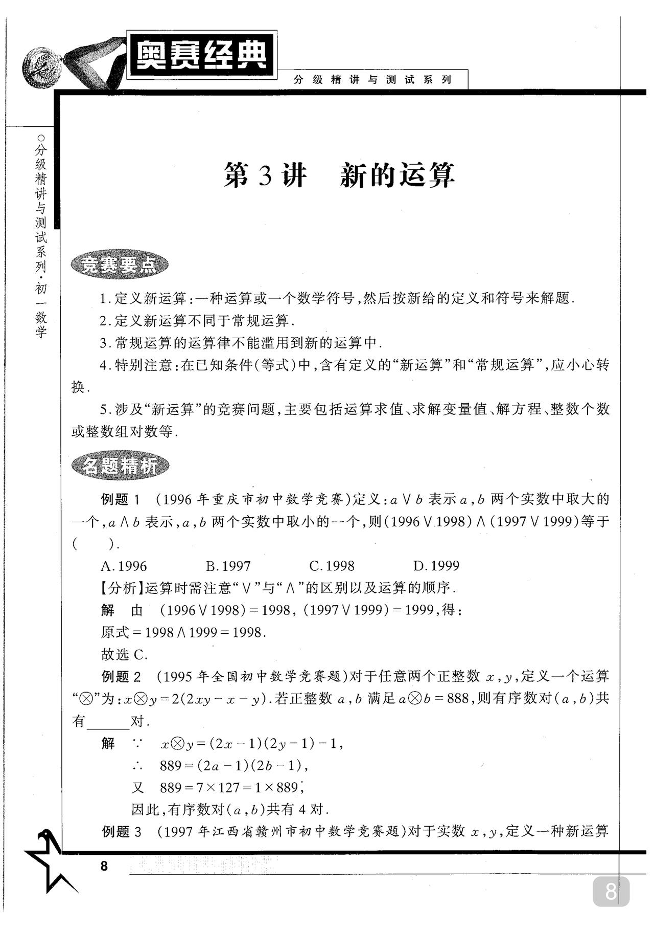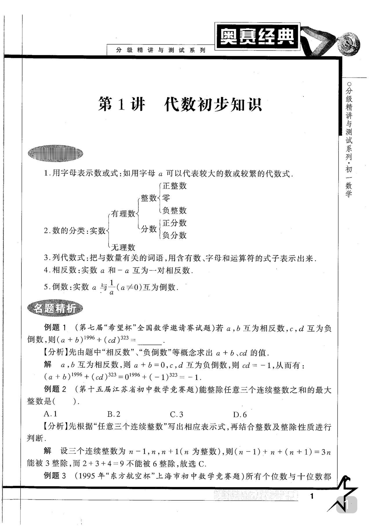 初中数学竞赛书籍推荐 《奥赛经典》王树国 主编 分年级 注: 该书也有不分年级只分类别(初中全四册) 但本人建议选分年级的更佳 至于在哪里买 请自行选择