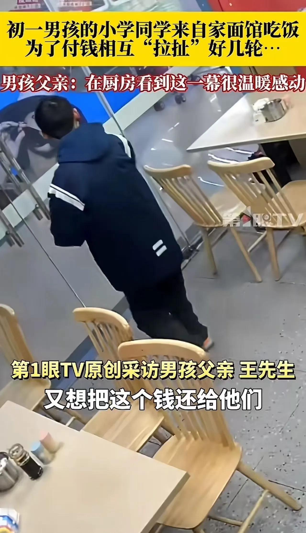 几个初中男生,给全网上了一堂“人品课”!初一男孩的小学同学们,来自家面馆吃饭,为了付钱,相互“拉扯”好几轮!让人看着看着就泪目了!网友:什么是兄弟?兄弟是相互托举,而不是占便宜! 这是一堂别开生面的“人品课”,也许比任何教科书都更打动人心。几个初中男生,来自不同的家庭,却在一家面馆里,用最真实的行动,演绎了什么叫“兄弟情”。他们没有华丽的言辞,没有高调的承诺,却用简单的“拉扯”和坚持,诠释了什么是真正的“兄弟”。 事情的起因很普通:饭后结账时,原本打算AA的他们,突然发现其中一人忘带钱。面对账单,气氛一度尴尬。于是,几个男孩开始“拉扯”——不是争抢,而是用行动传递信任。有人坚持要帮忙付钱,有人则坚持自己也可以分担。这场“拉扯”持续了好几轮,旁人看了都忍不住心头一震。 网友们纷纷评论:“这才是真正的兄弟情,彼此托举,而不是占便宜。”有人感慨:“这些孩子用最纯粹的方式,教会了我们什么叫责任,什么叫信任。”更有人说:“他们的举动让我想起了自己年轻时的友情,那份真挚、那份坚持,令人动容。” 或许有人会觉得,这不过是一次普通的吃饭场景,但细细品味,却能看到那份纯粹的善意和责任感在流淌。少年们用行动告诉我们:人品,不是空洞的口号,而是在细节中体现的品质。面对困难,选择相互扶持;面对利益,能坚持原则不占便宜。 这不禁让人反思:在这个快节奏、利益至上的社会,是否还有那么一群孩子,依然懂得“兄弟”的真谛?他们用实际行动告诉我们:人品的力量,远比金钱和名利更为珍贵。或许,我们每个人都应该从这几个初中男孩身上学点什么——那就是,无论走到哪里,心怀善意,彼此托举,才是真正的“人品”。 这堂“人品课”,让我们看到了未来的希望,也让我们明白:真正的兄弟情,是在关键时刻的坚持和信任,是在细节中的善良和责任。或许,这才是我们这个时代最需要的正能量。你是否也被这份纯粹打动了?你愿意为身边的人,成为那份无声的托举吗?人品从言语看人品