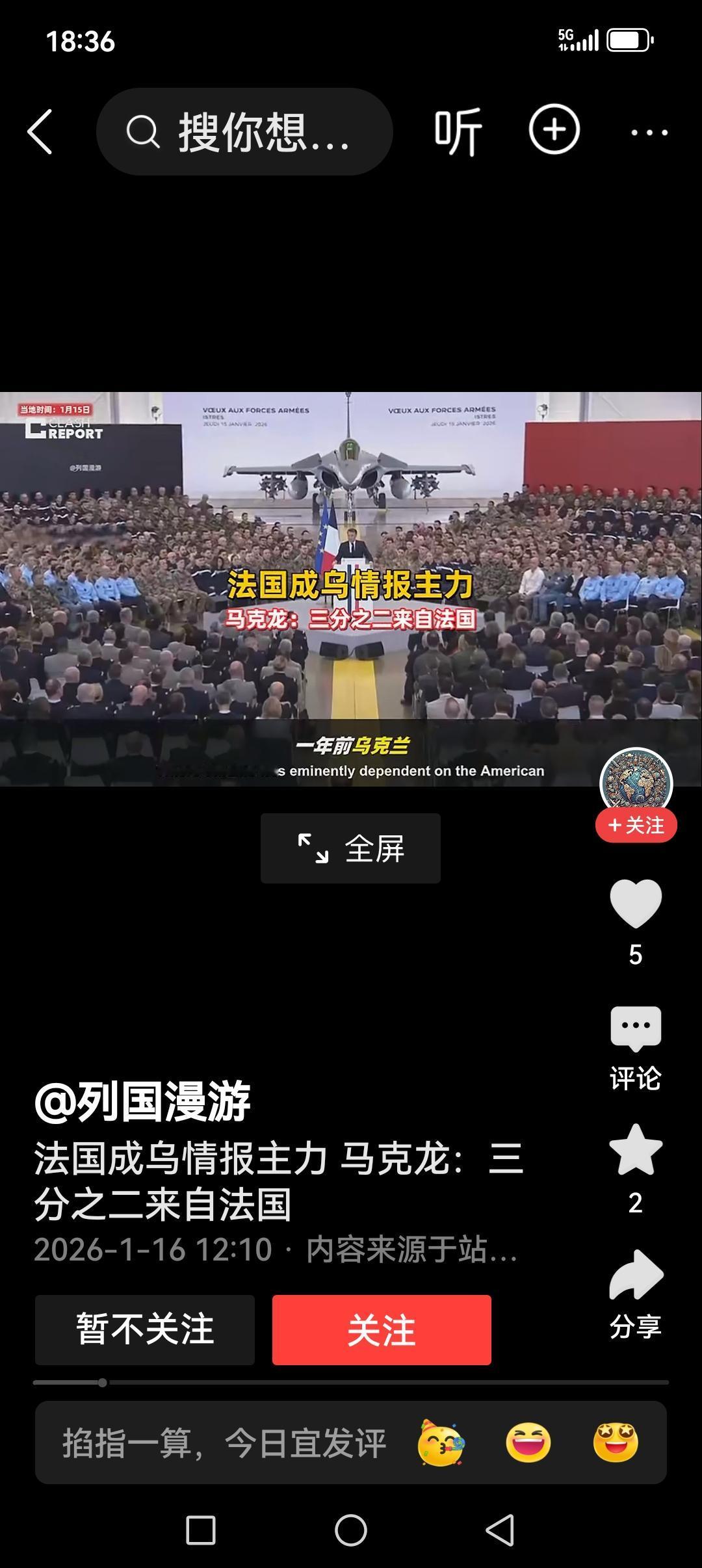 特朗普已经切断对乌的情报支持…三分之二的情报支持来源于法国! 法国总统马克龙宣布:乌克兰的情报支持三分之二来源于法国,其他的来自欧洲… 特朗普实际已经切断了对乌所有军事援助!包括资金、武器、情报!成了隔岸观火的局外人。 2025年是普京总统战场丰收的一年。已经控制了乌克兰领土面积大概5000平方公里。这都是因为特朗普对乌无所事事的政策引起的!特朗普功不可没…事实上特朗普已经成为了俄罗斯成功的助力和添加剂!特朗普也成为了俄罗斯名副其实的副总统…