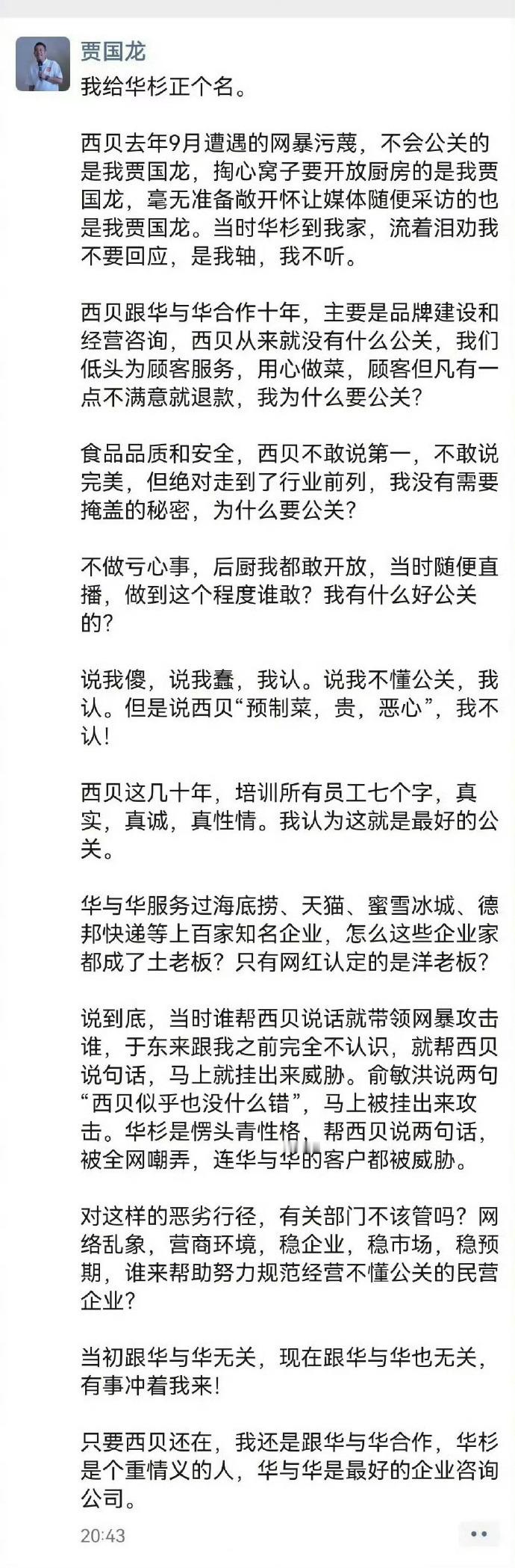 罗永浩回应了:罗永浩回应西贝闭店 通篇看下来,也没看到了什么毛病。对照这两篇内容,此时你更支持谁?