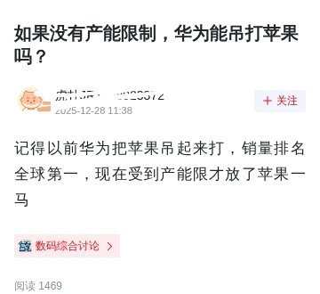不仅仅是产能限制,还有芯片、系统、海外市场的限制,参考18到20那几年华为手机芯片的持续进步,还有份额的增长,苹果当时已经很有压力了吧。
