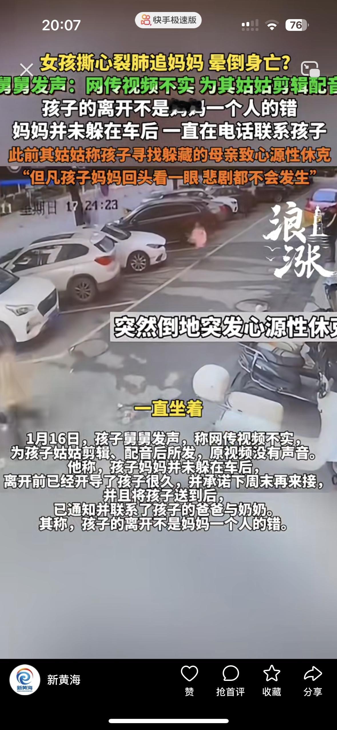 全网都被骗了!湖南女孩的悲剧,不是妈妈的狠心与无奈,而是亲姑姑的恶意剪辑。 去世女孩的舅舅发声,直指姑姑发布的视频是经过恶意剪辑和配音的,原视频本身并没有声音。他澄清,孩子的母亲并没有像姑姑所说的那样“躲在车后”,而是在离开前耐心开导了孩子很久,并承诺下周末再来接她。母亲将孩子送到后,也第一时间通知并联系了孩子的爸爸和奶奶,全程一直在电话里安抚孩子,并非网传的“消失不见”。 孩子的奶奶当时就在楼下的麻将馆打麻将,而孩子爸爸13号突然给孩子买了保险,真巧好像早知道孩子会死,如果爸爸家对孩子很好,孩子会这么撕心裂肺的找妈妈吗?亲姑姑为了引导舆论,不惜剪辑视频来网暴孩子妈妈,这样的一家人怎么这么恶毒呢?