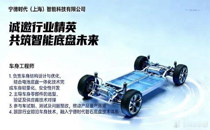 看来宁德不满足动力电池和储能了,想再进一步,直接集成底盘。集成底盘就是把线控转向,线控刹车,线控加速等智能化的模块都集中在智能底盘上。然后一个底盘可以配N个车身,就像那种四驱车一样,不同车身可以方便定制化。宁德时代造车