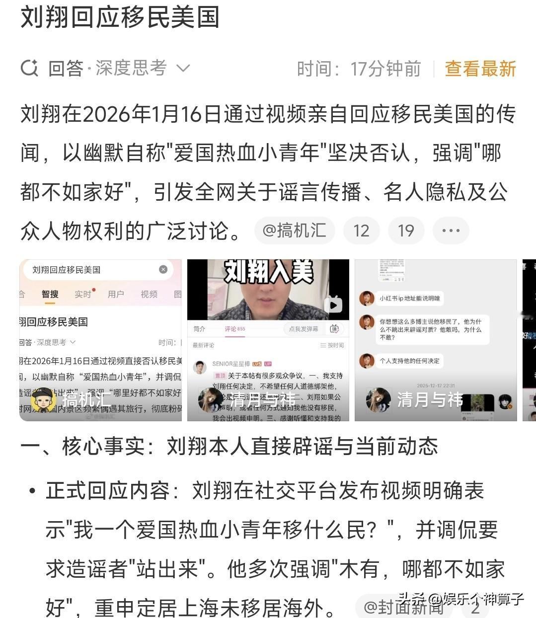 刘翔亲自出来辟谣了! 1月16日,很久没有露面的运动员刘翔上了热搜,万万没想到,这一次,不是因为以往在体坛创造的佳绩,而是亲自录制视频,辟谣移民传闻。 刘翔在视频中回应:“最近有个传闻,说我移民了,谁说的,站出来,我一个爱国小青年,我移民,到哪去移,真是的,中国人爱中国,记住了”! 不得不说,刘翔这话说的没毛病,用幽默的表达方式,反击造谣者。 咱就说,有些人真的闲得蛋疼,总是脑洞大开,也没有实锤,就在那胡乱猜测,太不像话了。 此外,刘翔看起来状态很好,一个人逛街,还挺清闲。