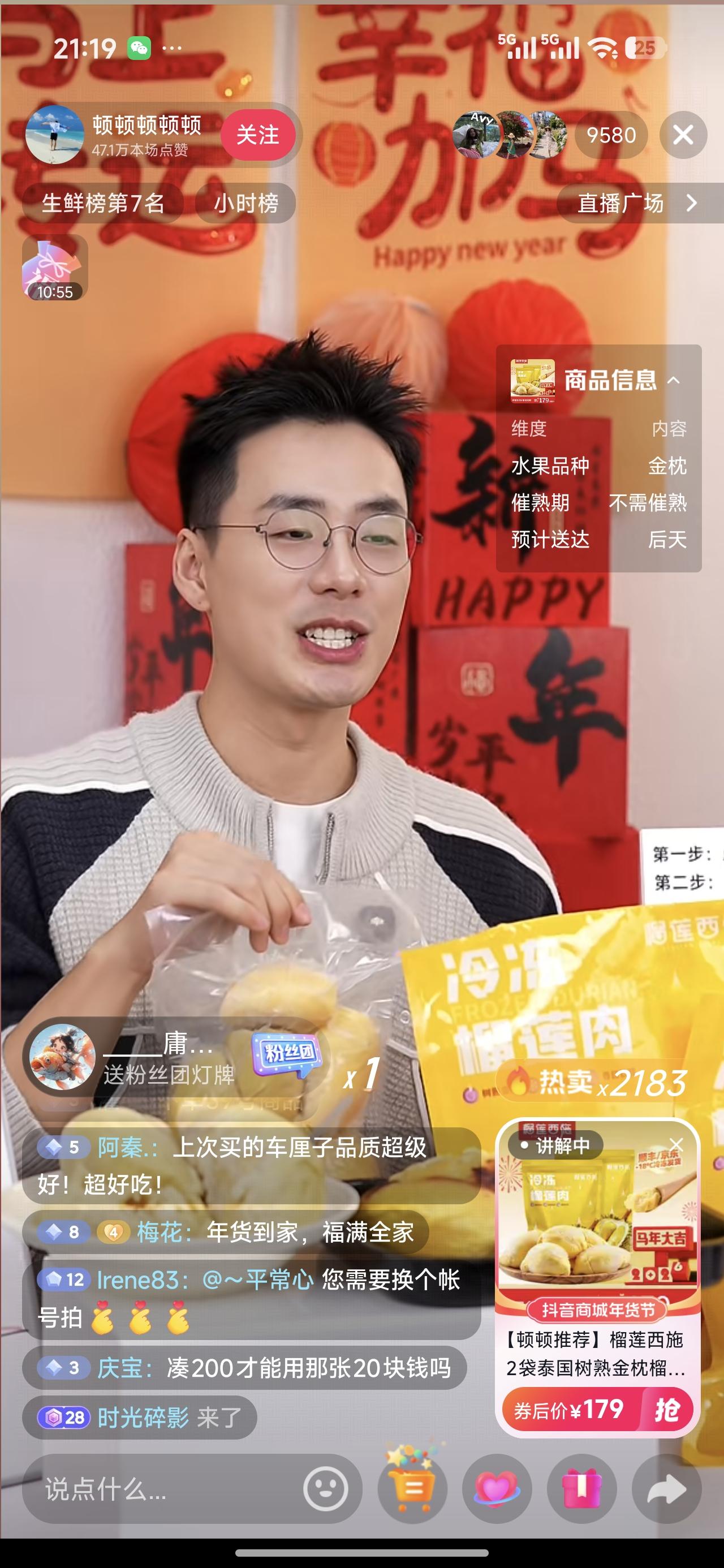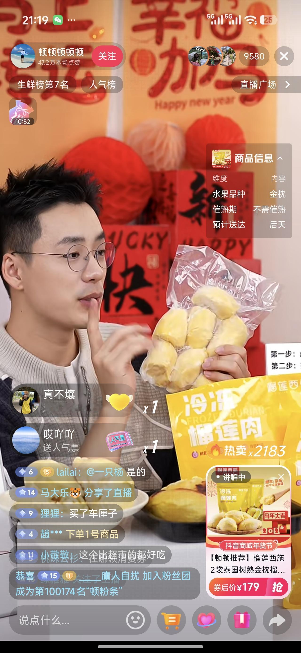 顿顿开播卖榴莲,销量还行哈!2100多单!一单挣10块,就两万万块钱了。当年的二号销冠,单干出来以后,成绩还说的过去。 他帅不帅,一般,个子比较高。人也年轻。还有一些受众群体的。 只不过比当年的销冠还差很多。销冠是锦鲤体质,没法比。太牛了。 努力赚钱吧!没的说。