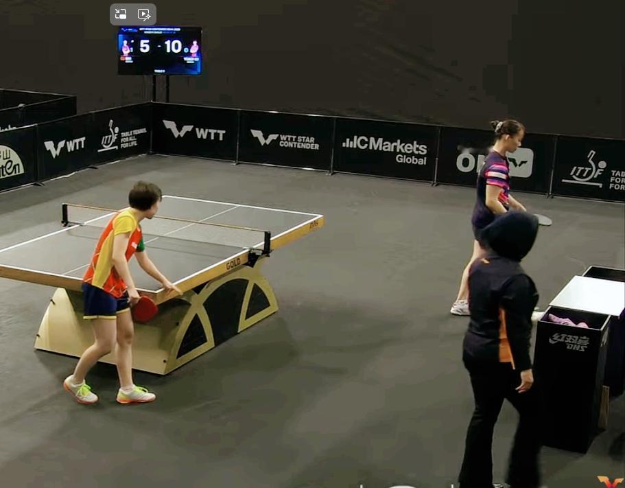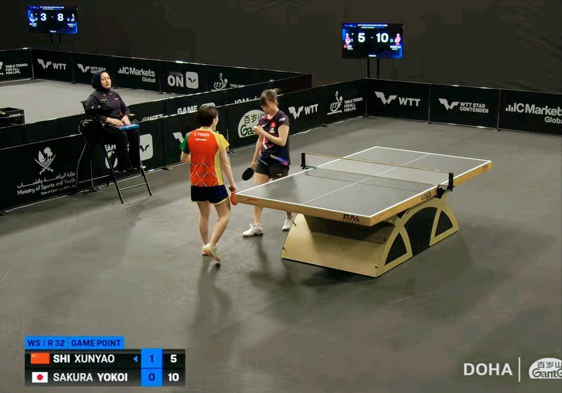 我晕,二号桌主裁判罢工了吗? 二号桌待遇太差了, 自己捡球也就罢了。 石洵瑶发现球坏了, 和横井确认后, 两人去找副裁判示意。 副裁判一看, 主裁判居然不在, 自己走过去拿了球给石洵瑶。 这还是国际比赛吗? 还不如咱乒超正规。 石洵瑶打球死板, 只打一个点, 被横井控死了。 第一局, 石洵瑶 11:5拿下 第二局 横井11:6拿下 第三局, 横井11:4拿下 哎,不看了,糟心!