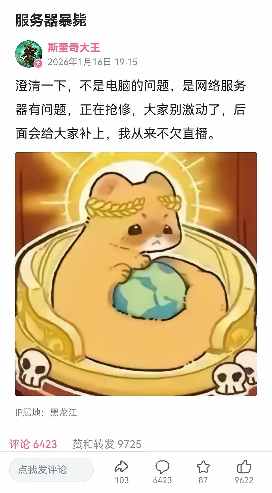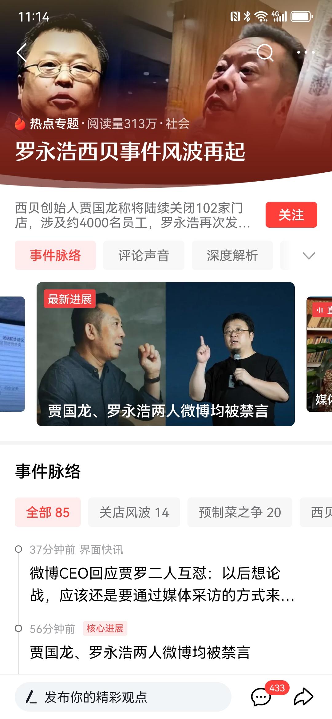 奇了怪了,今晚两个超级流量,平台却都不想要了。 西贝贾国龙和罗永浩要直播对线,俩人双双被渣浪禁言,播不了了。 牢A回国后第一场直播,还连了沈逸,还有个女博主,结果B站说服务器故障。 怎么平台这么拉胯,就是接不住泼天的流量呢? 不过贾国龙还是搞了个爆点,提到一嘴鸿茅药酒,说同样都是内蒙企业,他们西贝比鸿茅药酒老实太多了。