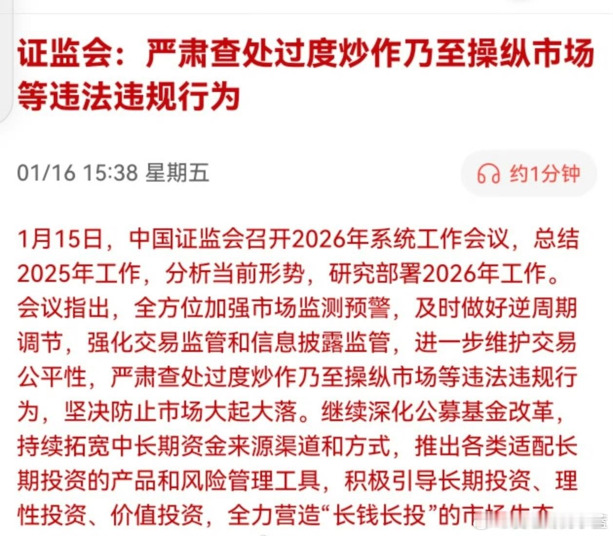 证监会:严肃查处过度炒作乃至操纵市场等违法违规行为。