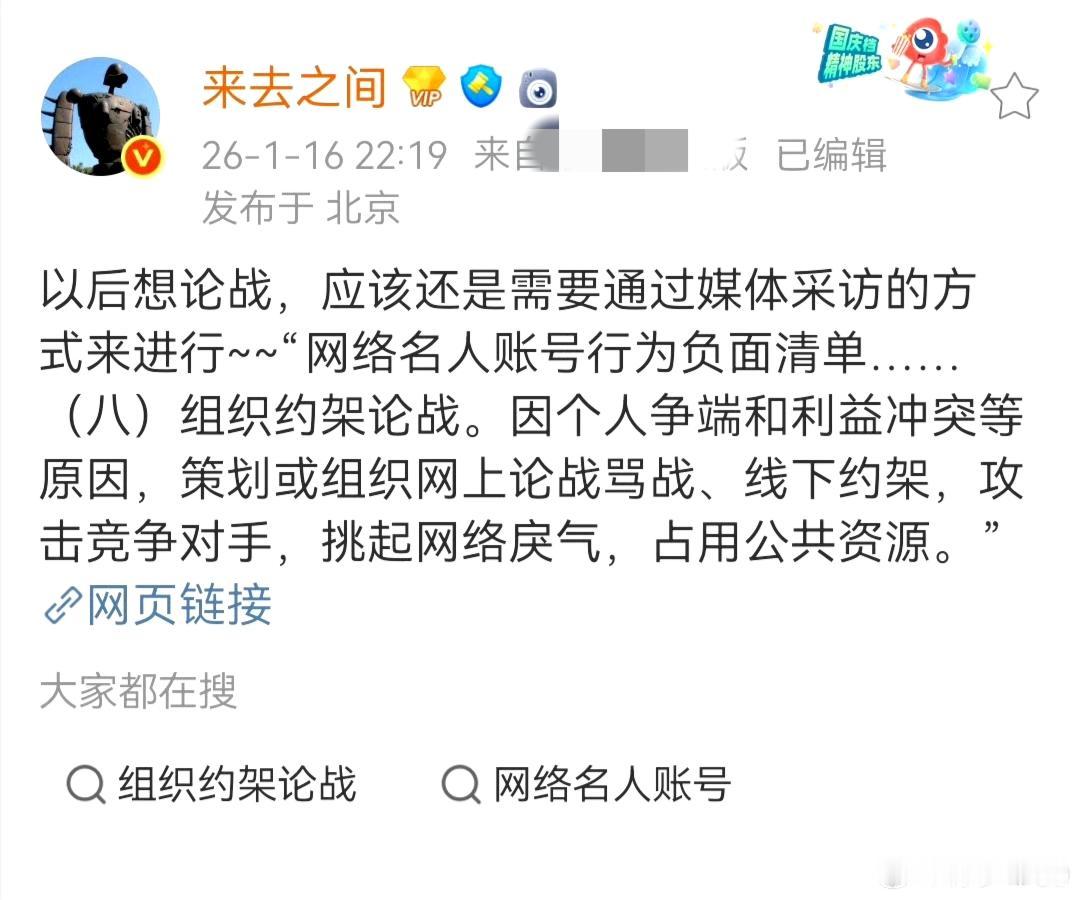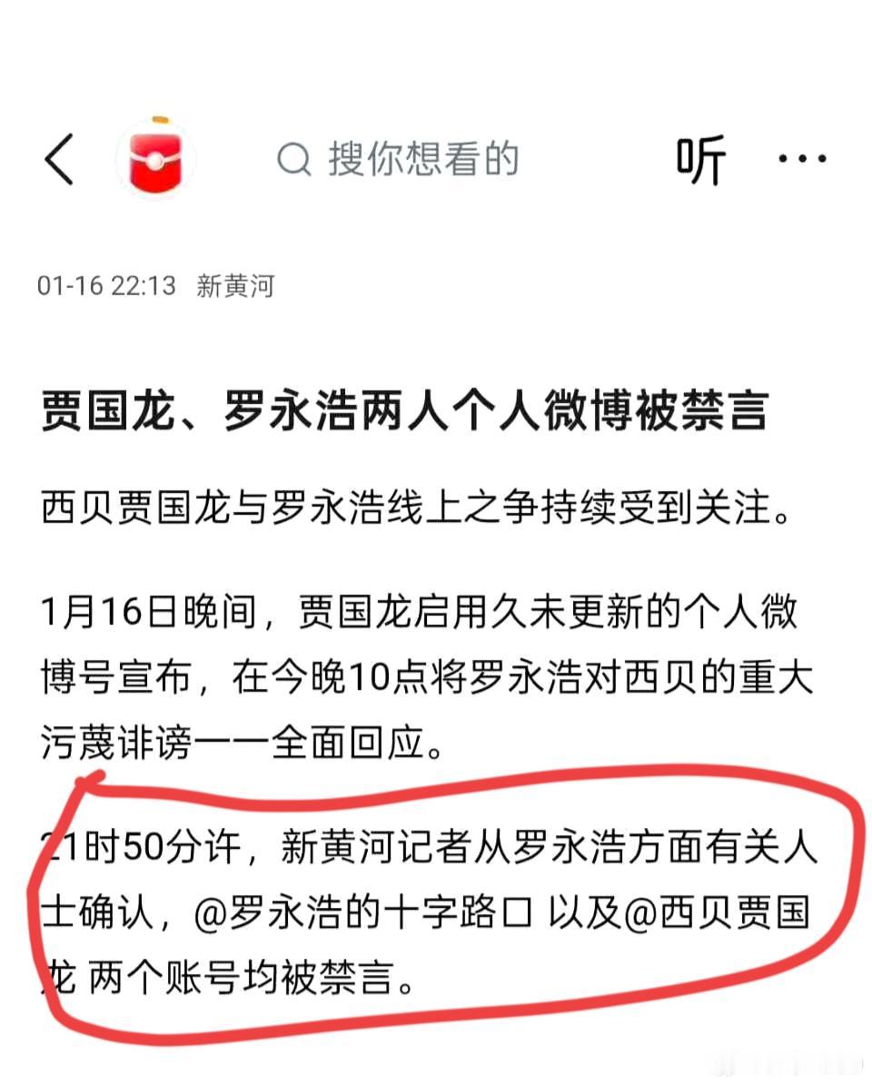 突发!贾国龙“鱼死网破”目的初步达到!他本人和罗永浩的账号均已被禁言! 某博的CEO(账号“来去之间”)适时发布了一条短文,关于网络名人账号行为负面清单之“组织约架论战”的说明。这间接证实了平台不提倡今晚的论战发生,两人的账号可能均已被禁言! 本来贾国龙约了今晚10点要全面回应罗永浩的“重大污蔑诽谤”!