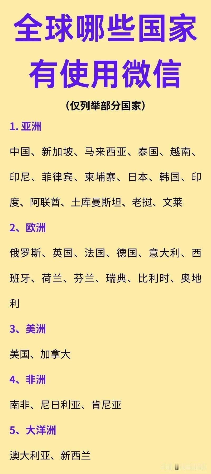 全世界使用微信的国家有哪些? 可以看到,微信的使用者主要都是我国人。 哪里有华人,哪里就有微信。 就算是去欧洲留学的留学生,他们的手机里也肯定带着微信。 在很大程度上来说,微信就是我们华人之间社交的工具,但是却不是当地主流的社交软件。 而微信在海外没有外国人使用,也并不是因为他们失败,而是微信的本质就是为了为华人社群服务。