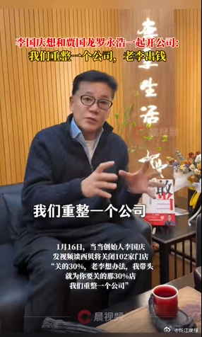【当当创始人李国庆喊话华与华、罗永浩帮西贝一把:将自掏腰包和贾国龙开新公司】#西贝回应##贾国龙今晚10点全面回应# 1月16日,当当创始人李国庆发视频谈西贝将关闭102家门店:“贾国龙别关,老李想办法。西贝要关三分之一的店,涉及到4000名员工,这100多天是太难了,扛不住了,要我我也扛不住,关15%正常,甚至关了15%再新开15%,符合新的布局。”#贾国龙让罗永浩道歉赔偿# 李国庆称,“关的30%,老李想办法,我带头,就为你要关的那30%店,我们重整一个公司,老李出钱,当然,老贾得足够的授权管理,还用你西贝的品牌。华与华,当惯了乙方了,知道甲方难了吧,这回救甲方,救老贾,你是不是得加一磅。不光华与华啊,如果老罗也愿意加一磅,满心欢迎。这事不用跟我老婆商量,这不是想当年了,我老婆从不参与我的商业决策。”近日,网传西贝在会议中称将一次性关闭全国102家门店,占门店总数的30%。记者就此事向西贝餐饮创始人贾国龙求证,其称消息属实。15日下午,贾国龙朋友圈发文再回应:很多朋友关心我、关心西贝,打电话来问,一并答复吧。截图信息基本是准确的,遭到铺天盖地的污蔑125天,一万七千西贝员工尽力了。我们不求人,就靠自己,拼了整整125天。(潇湘晨报、晨视频、读秒财经)