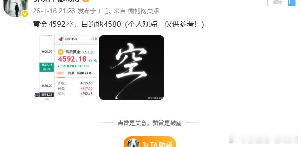 黄金4592空,目的地4580(个人观点,仅供参考!)