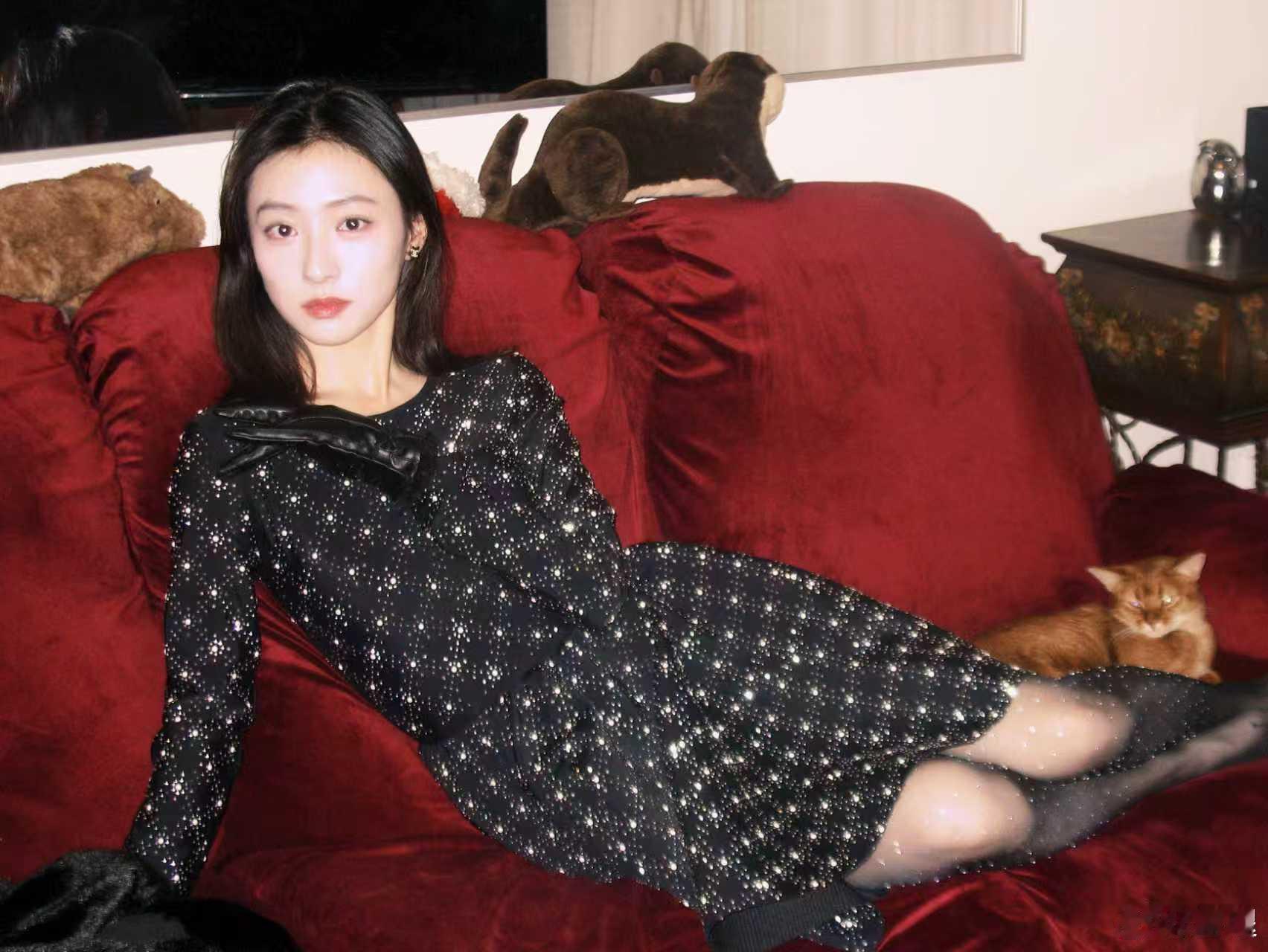 胡连馨 🖤 碎钻黑丝新造型