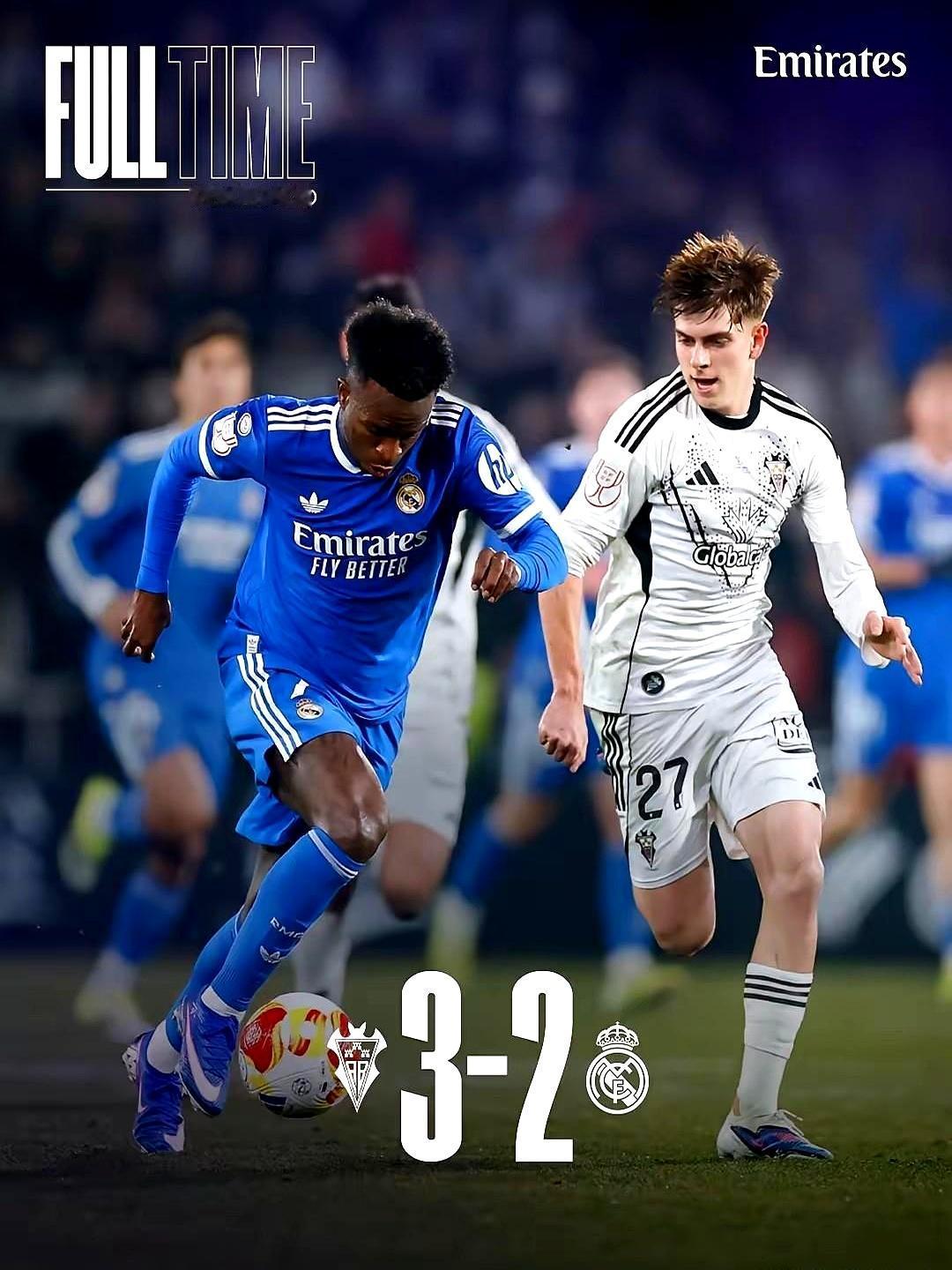 三天两场败仗,皇马像被扒了底裤。 1月12日,西超杯决赛,巴萨3比2。 拉菲尼亚两球一响,皇马追得热闹,最后却被人家的绝杀一巴掌扇回更衣室。 三天后,国王杯踢西乙倒数第四的阿尔巴塞特,皇马2比3再跪。 补时第94分钟,贝坦科尔兜射死角,现场炸锅。 皇马新帅阿韦洛亚首秀就翻车,换帅红利? 笑话。 队长卡瓦哈尔赛后一句“最大责任是球员自己”,算把遮羞布撕了。 伤病多、轮换乱都不是借口,身价一个亿的锋线照样踢丢单刀,后防像纸糊。 三天丢俩冠军,皇马不是触底,是还在往下掉。