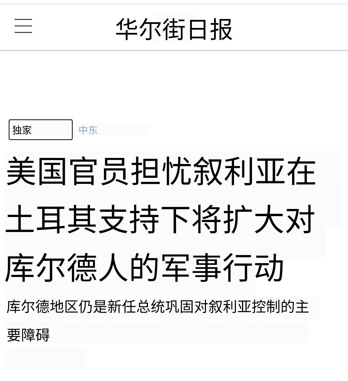 新闻快讯——美国高级官员担忧,叙利亚针对库尔德武装的新一轮军事攻势可能升级为针对美国支持的民兵组织的更大规模行动,此举或破坏叙利亚稳定,并进一步分化美国在打击“伊斯兰国”行动中的两个关键安全伙伴。——《华尔街日报》