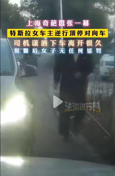 近日上海特斯拉女车主逆行顶停对向车,司机潇洒下车离开很久,报警后女子无任何惩罚。