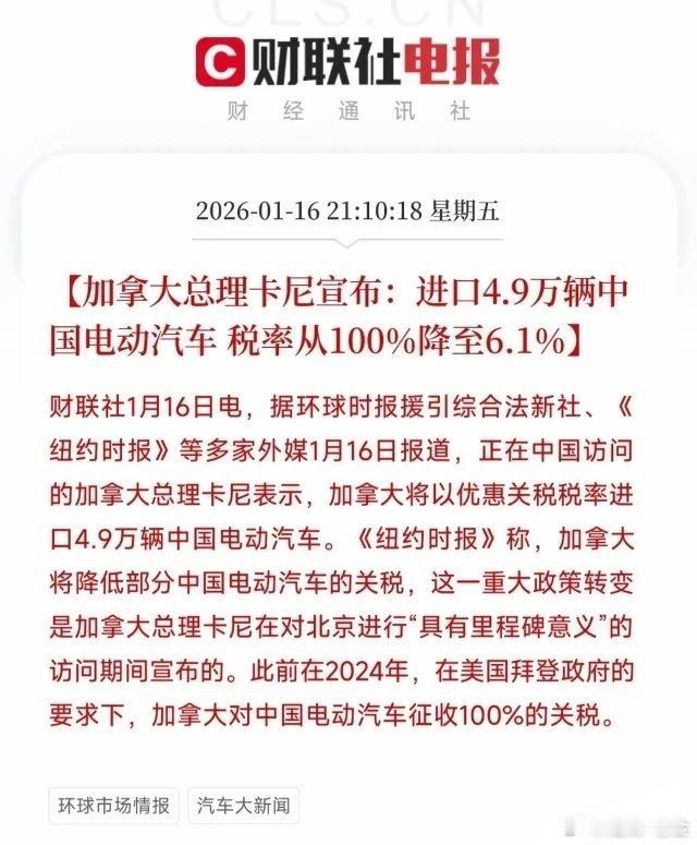 盘后这一板块迎来大利好!加拿大将中国电动车关税从100%降至6.1%并开放4.9万辆进口配额,是中加经贸回暖的标志性事件,直接打破了此前跟随美国设置的贸易壁垒。这一政策不仅为中国电动车企业新增了关键出口市场,更可能引发欧盟等经济体跟进调整关税,加速中国电动车全球化进程,全产业链将持续受益。受益概念股梳理比亚迪:全球电动车龙头,具备全产业链优势,海外出口持续攀升。加拿大关税大降后,公司凭借技术与产能优势,有望快速抢占配额份额,进一步扩大海外营收规模,巩固全球市场地位。上汽集团:国内出口主力车企,旗下名爵等品牌在海外认可度高。加拿大关税下调将助力公司电动车出口放量,依托成熟海外渠道,可快速获取订单,增厚业绩弹性。长安汽车:新能源车型矩阵完善,加速海外布局。加拿大政策红利下,公司可依托深蓝、阿维塔等品牌切入当地市场,提升出口占比,带动营收增长。吉利汽车:旗下极氪、几何等新能源品牌海外拓展提速。加拿大关税下调后,公司可借助产品竞争力抢占配额,扩大北美市场份额,推动全球化进程。蔚来汽车:高端电动车品牌,已布局海外市场。加拿大关税利好将降低公司车型在当地售价,提升性价比,吸引更多消费者,加速海外用户增长。小鹏汽车:聚焦智能电动车,海外业务稳步推进。加拿大关税下调后,公司可凭借自动驾驶技术优势切入当地市场,提升品牌影响力,扩大出口规模。理想汽车:增程式电动车龙头,正推进全球化布局。加拿大政策红利下,公司可依托产品口碑与产能储备,快速进入当地市场,提升海外营收占比。宁德时代:全球动力电池龙头,为多家车企配套。中国电动车出口加拿大放量将带动公司电池订单增长,依托技术与产能优势,深度受益下游需求提升。国轩高科:国内动力电池核心供应商,配套多家出口车企。加拿大电动车进口量增长将拉动公司电池需求,依托产能储备与客户覆盖,巩固行业地位。亿纬锂能:动力电池与储能双轮驱动,海外客户资源丰富。加拿大关税下调后,下游车企出口增长将带动公司电池订单放量,提升盈利水平。杉杉股份:锂电负极材料与电解液龙头,全球布局完善。加拿大电动车进口增长将拉动上游材料需求,公司凭借产能规模与客户覆盖,获得更多订单。璞泰来:主营锂电负极与涂覆材料,技术领先。中国电动车出口加拿大放量将带动公司材料需求,依托产能优势,进一步提升全球市场份额。容百科技:高镍正极材料龙头,配套头部电池厂。加拿大政策红利下,下游车企出口增长将拉动公司正极材料需求,推动业绩增长。先导智能:锂电设备核心供应商,全球市占率领先。加拿大电动车产业链扩张将带动设备需求,公司凭借技术优势,获得更多海外订单。旭升集团:新能源汽车零部件龙头,为特斯拉等配套。加拿大电动车进口增长将拉动零部件需求,公司依托客户资源,提升出口营收占比。拓普集团:汽车底盘与内饰件供应商,配套多家出口车企。加拿大关税下调后,下游车企出口放量将带动公司零部件订单增长,增厚业绩。三花智控:热管理系统核心供应商,全球布局完善。中国电动车出口加拿大增长将拉动公司热管理产品需求,依托技术优势,巩固市场地位。欣旺达:动力电池与消费电子电池双主业,海外业务拓展中。加拿大电动车进口增长将带动公司电池订单,依托产能储备,提升盈利弹性。天齐锂业:全球锂资源龙头,供应上游锂电材料。加拿大电动车产业链扩张将拉动锂需求,公司依托资源储备,受益于行业景气度提升。赣锋锂业:锂盐加工龙头,全球布局锂资源。中国电动车出口加拿大放量将带动锂盐需求,公司凭借产能与技术优势,进一步提升市场份额。总结此次加拿大对华电动车关税的大幅下调,是中国新能源汽车产业全球化的重要里程碑,20只受益股覆盖了整车、电池、材料、设备及零部件等全产业链环节。短期来看,具备出口能力的整车企业将率先享受配额红利,带动订单与利润增长;中长期则向上游传导,拉动电池、锂资源等环节需求,推动整个新能源汽车产业链景气度提升。同时,这一政策也为中国电动车打开更多海外市场奠定基础,相关企业有望持续受益于全球化进程。本文涉及资讯、数据等内容来自网络公共信息,仅供参考,不构成投资建议!加拿大将进口4.9万辆中国电车银价狂飙