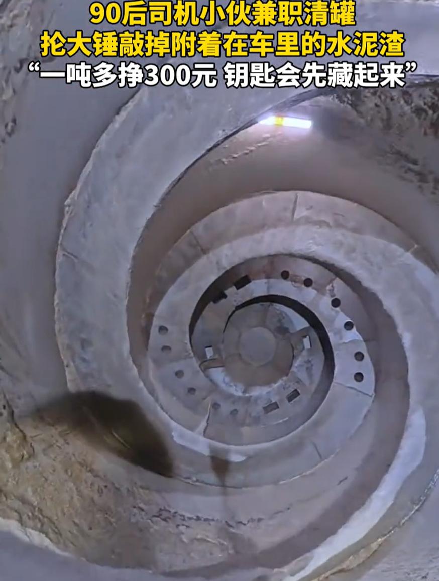 真不容易!湖南,一90后罐车司机,为了多挣点家用,白天开车跑运输,晚上就钻进窄小的罐子用锤子清理里面残留的水泥渣,一吨才挣300多块,全是实打实的血汗钱。   城市的深夜褪去喧嚣,大部分人已进入梦乡。   湖南一处建材工业园里,90后罐车司机刚结束白天的运输任务,却没卸下工装,反而从驾驶室里翻出安全帽和口罩仔细戴好。   他要钻进自己驾驶的水泥罐车罐体,用十几斤重的大锤,把附着在罐壁上的凝固水泥渣一点点敲下来,这份深夜兼职,每清理一吨能挣300多块钱。   这看似简单的“砸水泥”背后,藏着不为人知的艰辛与危险,更藏着一个普通男人对家庭的责任。   男子的主业是白天跑商砼运输,月薪八千元,2025年下半年,妻子怀孕的消息让这个年轻的家庭充满期待,却也让他感受到了沉甸甸的压力。   房贷每月要还,日常开支不算少,八千元工资扣除这些后所剩无几,孩子出生后的奶粉钱、尿不湿钱都得提前筹备。   偶然间听说清理水泥罐能赚额外收入,男子没多想就接下了这份活,对他来说,这不是选择题,而是为了家人必须扛起的责任。   水泥罐车之所以需要清理,和它的工作原理密切相关,这种车辆在行驶时,罐体必须持续转动,才能防止内部的商品混凝土凝固。   即便如此,每次卸料后仍会有部分混凝土残留,这些残留会随着时间慢慢凝固在罐壁上,不仅影响后续装载量,还会破坏罐体旋转时的动平衡,所以每隔一到两个季度,就必须进行一次彻底清理。   可罐体内部的环境远比想象中恶劣,直径不到三米的空间里,布满了复杂的螺旋结构,人进去后根本站不直,只能半蹲着或弯腰作业,连转身都得小心翼翼。   钻进罐体的那一刻,男子就进入了一个“粉尘笼罩的密闭世界”。   虽然戴着口罩,但细小的水泥粉尘还是会从缝隙钻进鼻腔和喉咙,作业几分钟就会感到喉咙干疼、胸闷气短。   他双手紧握大锤,对着坚硬的水泥块狠狠砸下去,每一次抡锤都要用上全身力气,可水泥块往往只掉一小块,手臂酸痛到抬不起来是常有的事。   更让人揪心的是无处不在的风险,罐内通风极差,随时可能出现缺氧情况;头顶不时有松动的水泥渣掉落,砸在安全帽上发出“咚咚”的声响。   最危险的是怕外面有人误碰开关启动车辆,一旦罐体转动,里面的人连求救的机会都没有。   为了保命,男子摸索出了一套“土规矩”,每次进罐前,他都会把车钥匙藏在一个极其刁钻的地方,连自己都得费点劲才能找到,就是为了杜绝任何人误启动的可能。   他还和工友约定,每六十分钟必须报一次平安,只要超时没收到消息,工友就得立刻过来查看。   这些看似简单的措施,都是他在一次次作业中总结出的生存法则,背后是对家庭的牵挂和对生命的敬畏。   这份高危工作的报酬,每吨300多元,在外人看来或许不算低,但只有男子知道这钱有多难挣。   一晚上挥汗如雨,最多也就能清理一吨多,拿到几百块现金,可身体要承受的代价却难以估量。   长期吸入水泥粉尘,可能会对肺部造成不可逆的损伤,十年后或许就会出现职业病症状;长时间弯腰半蹲作业,腰椎和膝盖也在默默承受压力;罐内的缺氧环境和未知风险,更是让每一次作业都像一场“豪赌”。   男子心里清楚这些风险,他早就计划好了,等孩子出生就彻底停下这份兼职,他赌的是在身体撑不住之前,能攒够孩子的奶粉钱,赌的是那些隐形风险不会提前爆发。   有人说,为什么不用机器人来做这种高危工作?   答案其实很现实,一台适用的清罐机器人售价高达数十万元,而清罐工作并不是高频作业,企业出于成本考量,最终还是选择了人力。   这也让清罐工作陷入了一个尴尬的境地,成为了高危却缺乏标准化安全保障的岗位,像男子这样的劳动者,只能靠自己的“土办法”保护自己。   男子的故事被分享到网上后,引发了无数网友的共情。   大家之所以被打动,是因为在他身上看到了自己或身边人的影子,那些为了家庭、为了生活,在平凡岗位上默默打拼的普通人。   更让人揪心的是,类似的罐体作业事故并不少见。   这些案例也让男子的“保命规矩”显得更加珍贵,他的清醒和谨慎,不仅保护了自己,也给同行们敲响了安全警钟。   城市的发展离不开高楼大厦,而高楼大厦的崛起,离不开像男子这样的劳动者。   他们的工作没有聚光灯,没有鲜花和掌声,甚至很少被人关注,却在城市运转中扮演着不可或缺的角色。   男子每抡一次大锤,敲碎的不仅是坚硬的水泥块,更是生活的重压;每一滴汗水,都承载着对家人的爱与责任;每一次平安出罐,都是对生活最朴素的期盼。   三百多元一吨的报酬,算不上丰厚,却凝结着实打实的血汗,男子用自己的坚守和付出,告诉我们什么是普通人的责任担当。   不是惊天动地的壮举,而是在生活的压力下,不退缩、不抱怨,用双手为家人撑起一片天,是在明知有风险的情况下,依然保持清醒和谨慎,既要挣钱养家,也要守护好自己的安全。