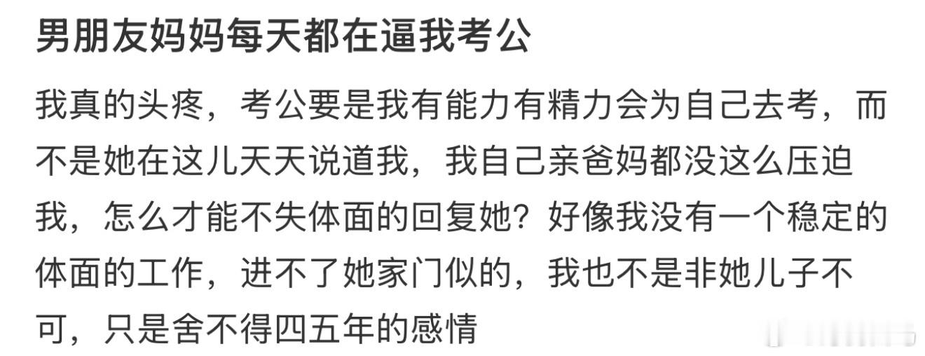 男朋友妈妈每天都在逼我考公努力考公的原因