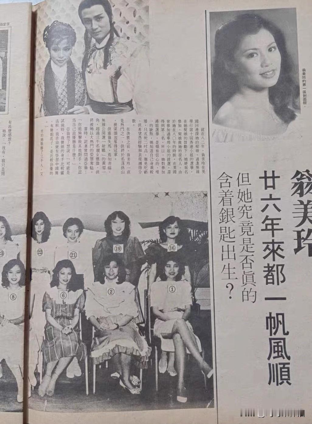 🎆翁美玲旧刊报道👇 提起翁美玲,你最先想到的永远是那个娇俏灵动、一眼万年的黄蓉。 在观众眼里,她是一夜爆红的天之骄女,是“含着银匙出生”的幸运儿——24岁凭《射雕英雄传》封神,演艺之路仿佛开了挂。 ✨ 港姐失利:不是天生主角,是拼命抓住机会 1982年,翁美玲从英国回港参加“华裔小姐”竞选,拿下亚军,紧接着又冲击香港小姐。 她信心满满,却在五强止步,最终只拿到第8名。 换作别人或许会消沉,但她却把这次挫折当成入场券。 港姐竞选后,TVB向她递来橄榄枝,她立刻抓住机会签约,从龙套演起,哪怕只有几句台词,也反复打磨。 🎭 黄蓉封神:不是幸运爆红,是用命在演 很多人以为黄蓉是“天降紫微星”,但很少人知道,为了贴近角色,翁美玲把原著翻烂,对着镜子练眼神,连吃饭都在琢磨黄蓉的神态。 剧组里她是最拼的那个:吊威亚摔得遍体鳞伤不说,为了呈现最好的效果,一场雨戏连拍8小时,冻到嘴唇发紫也不喊停。 正是这份狠劲,让“俏黄蓉”成了无法超越的经典,也让她一夜之间家喻户晓。 💔 风光背后:不是一帆风顺,是无人诉说的疲惫 杂志里写着“廿六年来都一帆风顺”,但翁美玲自己却说:“我不是含着银匙出生的,我只是凭着一股拼劲走到今天。” 爆红后,她被塞进密集的拍戏日程,一年连拍《夹心人》《决战玄武门》《天师执位》等多部剧集,常常三天三夜没合眼。 在旁人眼里的“顺风顺水”,是她用健康换来的光鲜。 她用短暂的生命告诉我们:没有天生的幸运,只有不为人知的拼命。 那个永远活在26岁的黄蓉,不仅是荧幕里的传奇,更是一个用尽全力去发光的普通人。