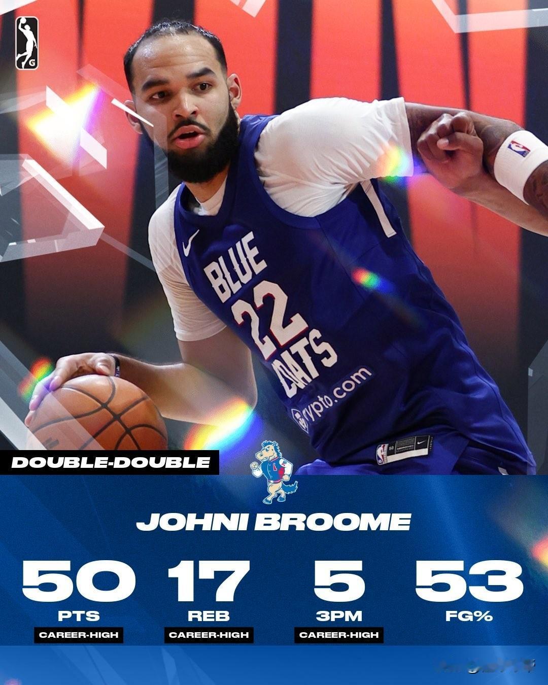 76人队竟然还有如此猛将,次轮秀布鲁姆在发展联盟爆砍50分17篮板! 在刚刚进行的一场NBA发展联盟的比赛中,76人次轮秀内线球员乔奈·布鲁姆打出了封神一战,全场投篮34投18中,三分7中5、罚球7中5,爆砍50分17篮板5助攻1抢断2盖帽恐怖数据,带领球队155-140大胜对手。 NBA发展联盟真的是卧虎藏龙呀,看来杨瀚森在发展联盟拿到22分还是普普通通了,今天要是能在发展联盟拿到40分那才算表现合格了。