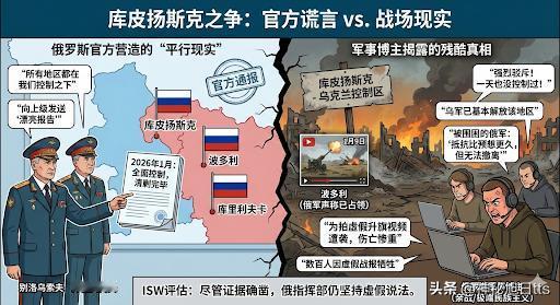 俄罗斯军事博客作者继续强烈驳斥俄罗斯总统普京和高级军事指挥官试图营造的另一种战场现实。 1月16日,俄罗斯国防部长安德烈·别洛乌索夫视察了俄罗斯西部部队集群,并听取了集群指挥官谢尔盖·库佐夫列夫上将的报告。库佐夫列夫声称,俄军在库皮扬斯克方向于2025年12月占领了库切里夫卡(位于库皮扬斯克以东)、波多利和库里利夫卡(均位于库皮扬斯克东南)。别洛乌索夫特别询问俄军是否正在清剿库皮扬斯克,库佐夫列夫回应称,俄军控制了库皮扬斯克的所有地区,乌克兰军队试图突破进入该镇的企图均告失败。别洛乌索夫和库佐夫列夫关于俄罗斯控制库皮扬斯克的说法,与俄罗斯总参谋部陆军上将瓦列里·格拉西莫夫1月15日关于占领库皮扬斯克以及即将占领库皮扬斯克-武兹洛维(库皮扬斯克以南)的说法类似。自2025年11月以来,俄罗斯高级指挥官一直在发表类似的夸大其词的言论。然而,乌克兰军队已经基本解放了库皮扬斯克及其周边地区的大部分地区。 尽管有大量的视觉证据以及乌克兰和俄罗斯方面的报告表明事实并非如此,但ISW仍然认为俄罗斯军方指挥部坚持其关于占领库皮扬斯克的虚假说法。 包括一名与克里姆林宫有关联的军事博主和多名亲战极端民族主义军事博主在内的俄罗斯军事博主,强烈驳斥了俄罗斯军方关于库皮扬斯克及其周边地区的反复虚假声明。这些博主否认俄军控制了库皮扬斯克、库皮扬斯克-武兹洛维、波多利、库里利夫卡和彼得罗巴甫洛夫卡(位于库皮扬斯克以东),一些博主甚至将俄军在库皮扬斯克的存在描述为“几个防御据点”和“局部防御”。这位与克里姆林宫有关联的军事博主声称,有视频证据表明乌克兰军队在库皮扬斯克和库皮扬斯克-武兹洛维地区活动。该博主还指出,大约一周前(大约1月9日)的录像显示,尽管俄罗斯国防部在1月4日声称俄军已占领波多利,但俄军炮兵仍在继续炮击该地。这位军事博主表示,俄罗斯西部部队“并不急于”停止向上级发送“夸大其词”的报告,并直接以别洛乌索夫 1 月 16 日与库佐夫列夫的会面为例。 一位俄罗斯军事博主在报道西方部队集团时指出,格拉西莫夫提出的“平行现实”并未提及被围困在库皮扬斯克的俄军士兵。这些士兵的抵抗“比任何人预想的都要持久”,但其他俄军部队却无法抵达。该博主指出,只有“极少数”俄军能够抵达库皮扬斯克-武兹洛维,但已被乌克兰军队消灭。该博主还表示,一群俄军士兵在库皮扬斯克-武兹洛维拍摄升旗视频(很可能是为了支持俄罗斯官员关于近期占领该地的虚假说法),随后遭到乌克兰军队的袭击。该博主指出,视频的最后部分“不会在任何地方发布”。这位军事博主表示,俄罗斯军队最近才抵达彼得罗巴甫洛夫卡和波多利,但一直未能控制这两个定居点,尽管俄罗斯国防部声称俄罗斯军队分别于 11 月 21 日和 1 月 4 日占领了这两个定居点。 一位俄罗斯军事博主在直接回应别洛乌索夫1月16日的会晤时表示,有关俄罗斯控制库皮扬斯克的说法“不仅不准确”,而且“与实际情况相去甚远”,因为俄军“一天也没有控制过库皮扬斯克”。军事博主们普遍抱怨该地区屡次“失败”,并批评俄军向上级发送“漂亮报告”声称取得进展的做法。俄罗斯军事博主们抱怨说,西方部队“毫无根据”地宣称取得进展的做法导致俄军对乌克兰解放该地区的攻势反应不足,造成“数百人”的重大伤亡,部队协调困难,以及“残酷”的袭击。