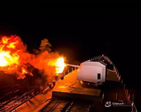 夜色中,怒吼着的国产100毫米双联舰炮。看似有些笨拙的它,曾在赤瓜礁海战中,对着越南605船持续射击了22分钟。605船被几百发一百毫米炮弹打得浑身烟火,最终沉入大海。