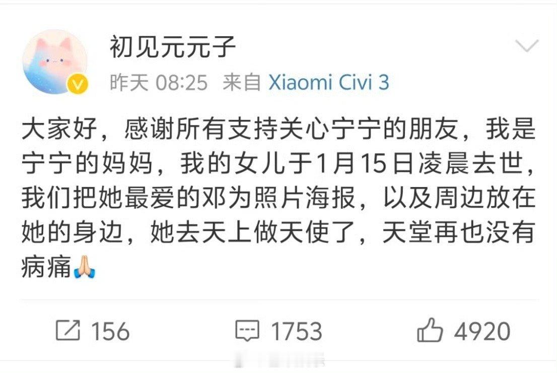邓为悼念去世粉丝去世粉丝家人说感谢邓为 邓为永远把钻石当朋友当家人,永远双向奔赴!愿元元在天堂没有病痛,愿所有钻石们都健康平安