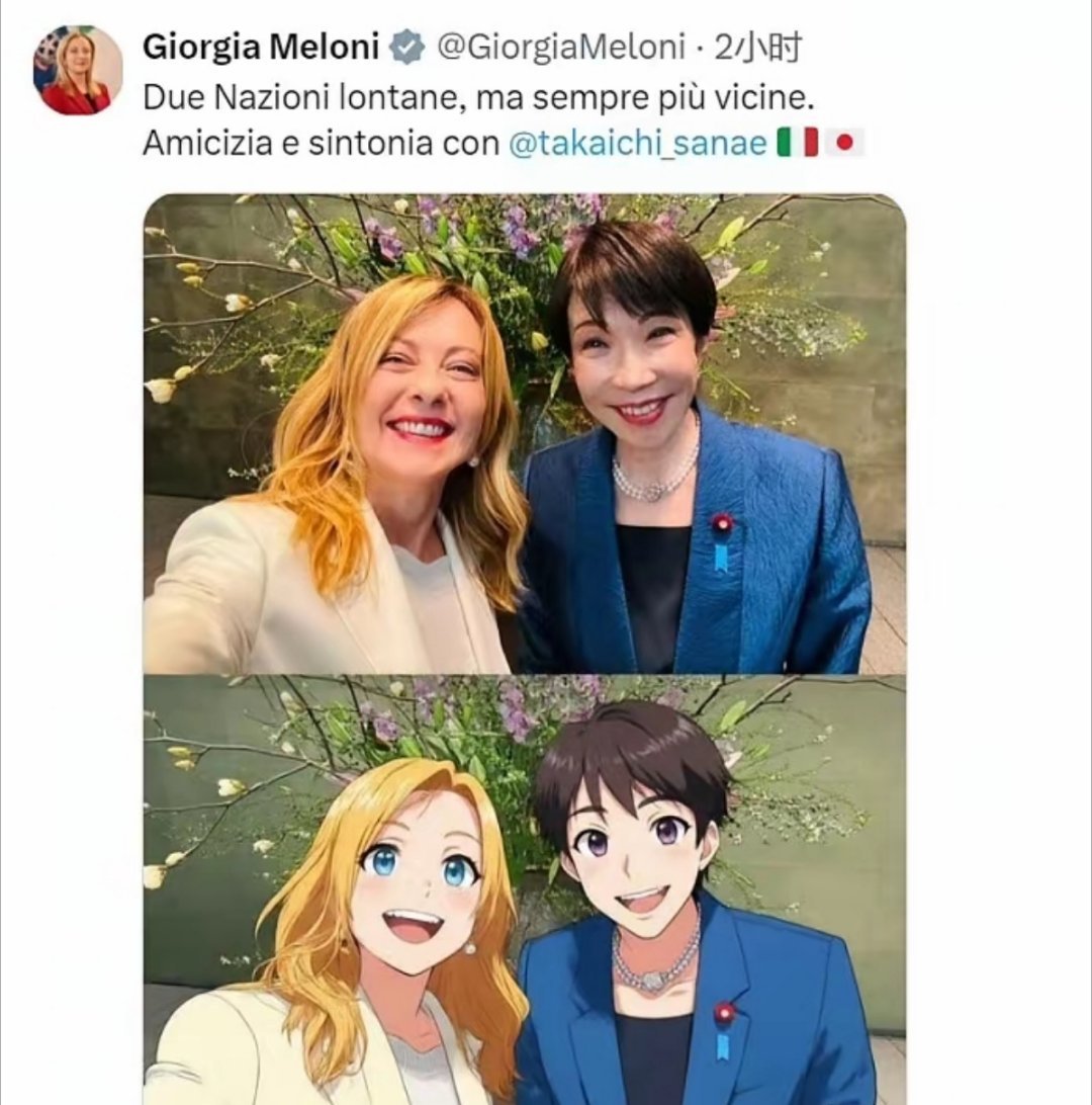 梅洛尼发推文称:两个遥远的国家却越来越亲近!