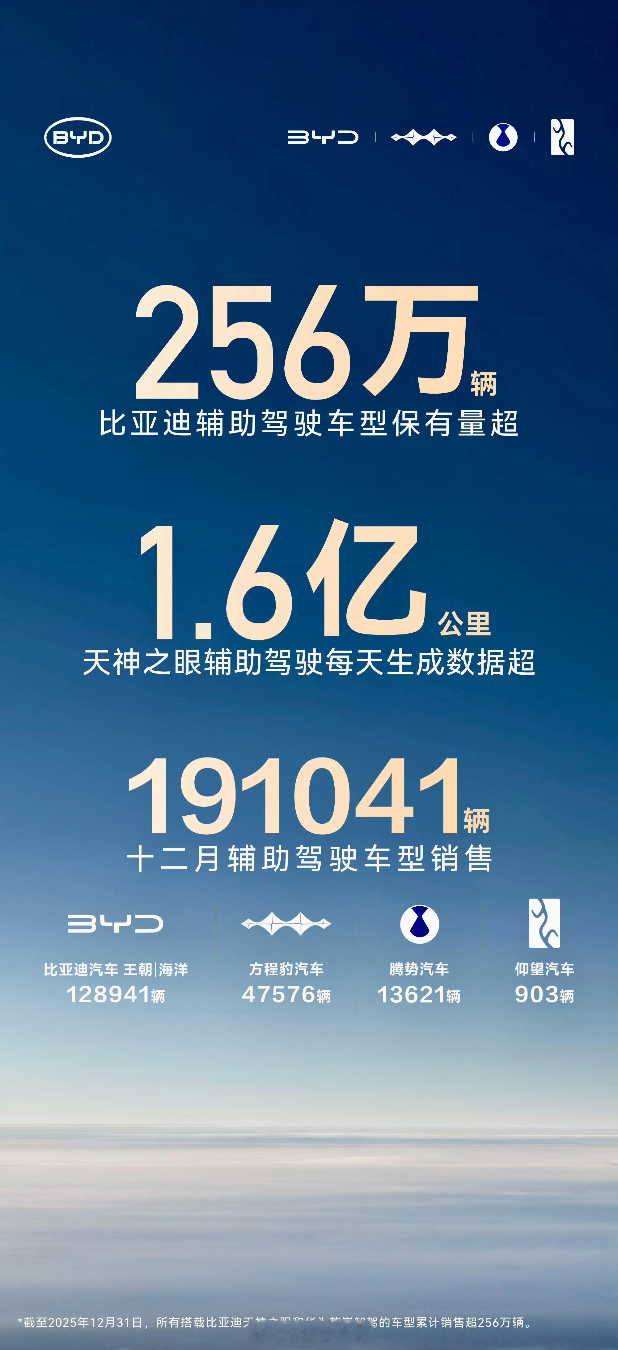 宝子们,比亚迪“天神之眼”辅助驾驶系统简直绝了!现在已经装车超过256万辆,就说2025年12月,就卖了191041辆,这销量杠杠的!这些车每天在路上跑,能收集到1.6亿公里的真实数据,这系统就跟开了挂似的,越用越聪明。迪子最牛的是,比亚迪放话了,智能泊车要是出问题,不管你是谁开的,是不是首任车主,损失全赔,这就是技术过硬,底气十足啊,咱用户用着也安心。比亚迪新能源汽车大v聊车