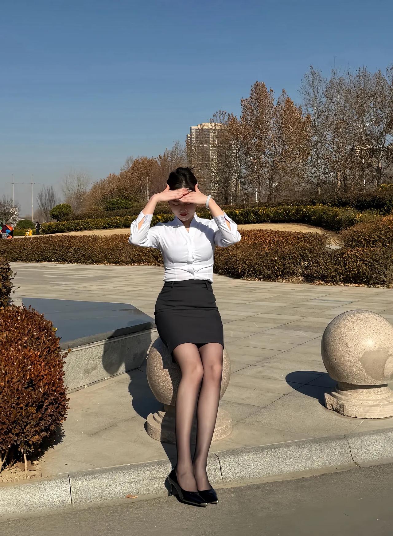 冬日暖阳下,黑裙与长靴的时尚碰撞,尽显都市女性的优雅与自信。