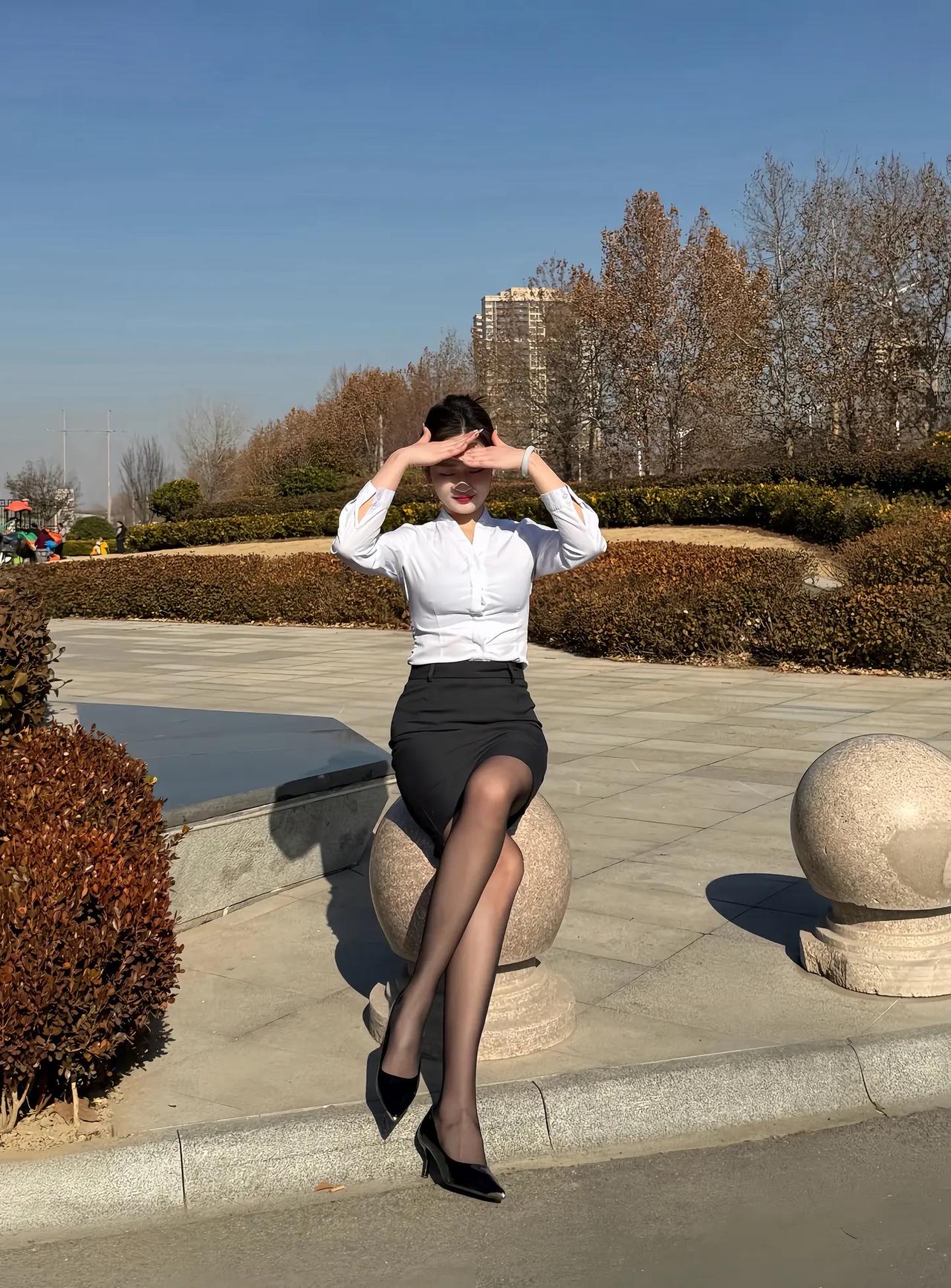 阳光明媚的午后,优雅白领在公园里享受美好时光。