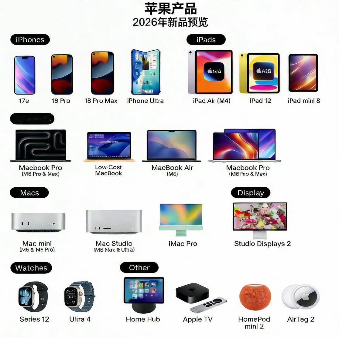 或许是2026年苹果公司将要发布的新品,手机有iPhone 17e、iPhone 18 Pro、iPhone 18 Pro Max,折叠屏iPhone,倒计时8个月,现在开始攒钱,每个月存点,就能买得起[吃瓜群众]