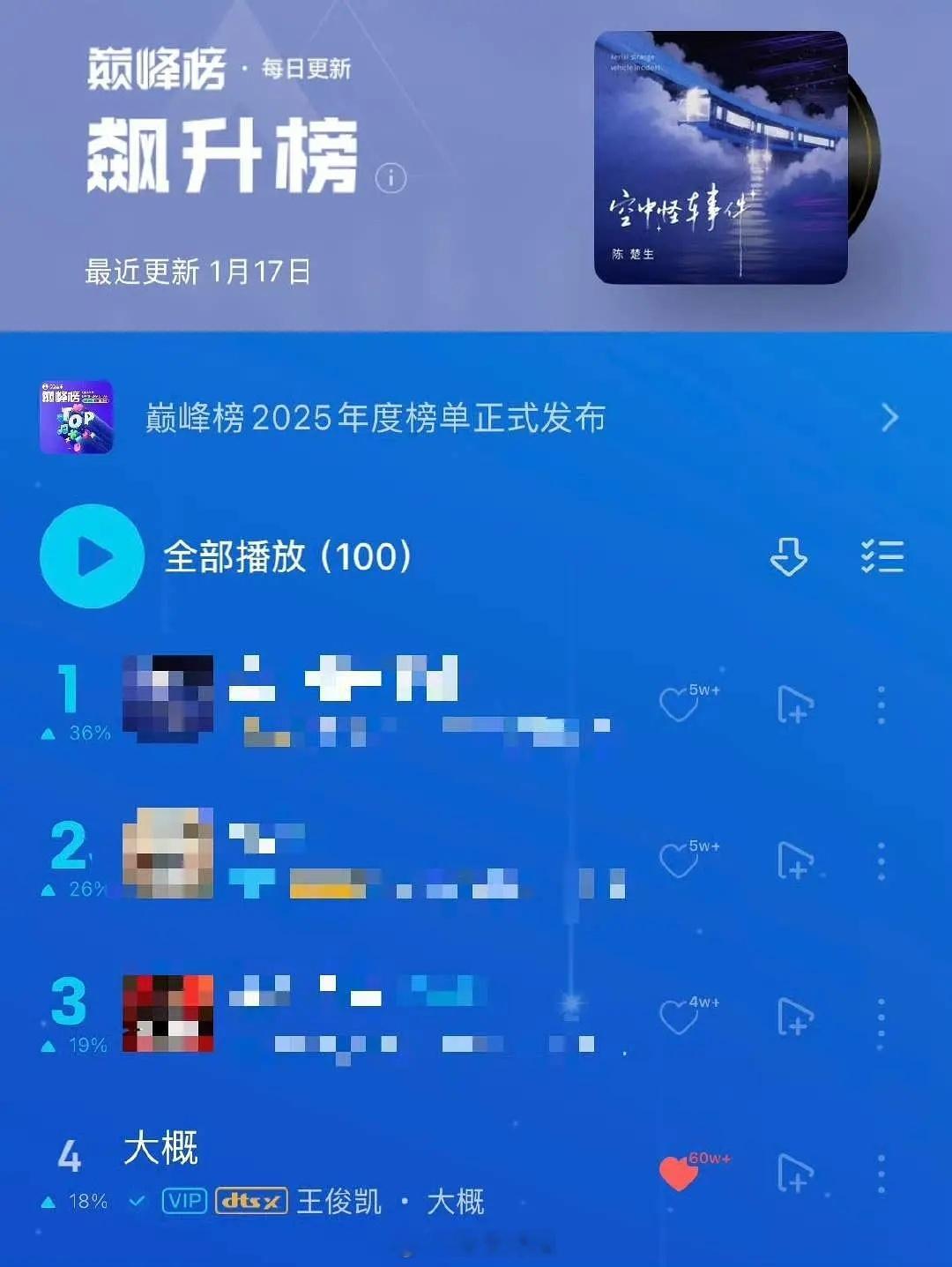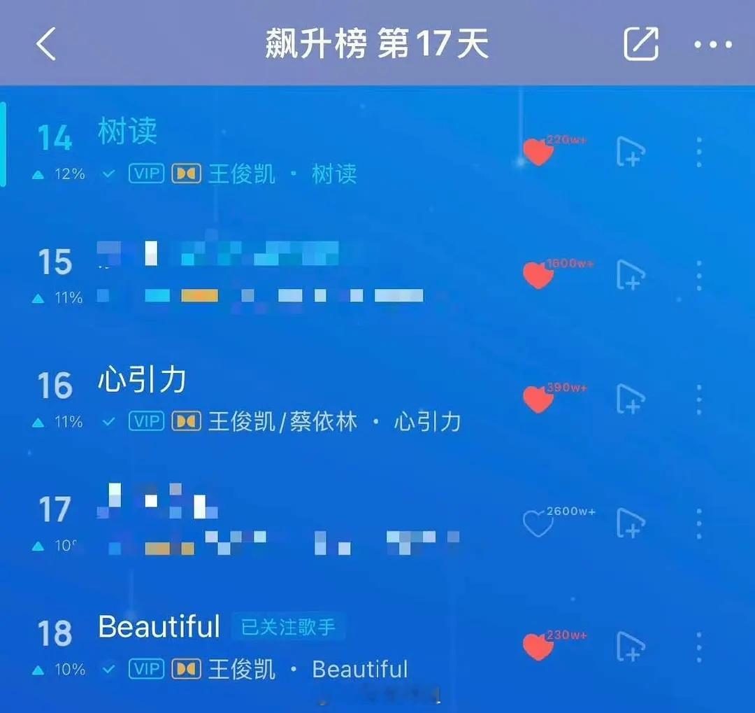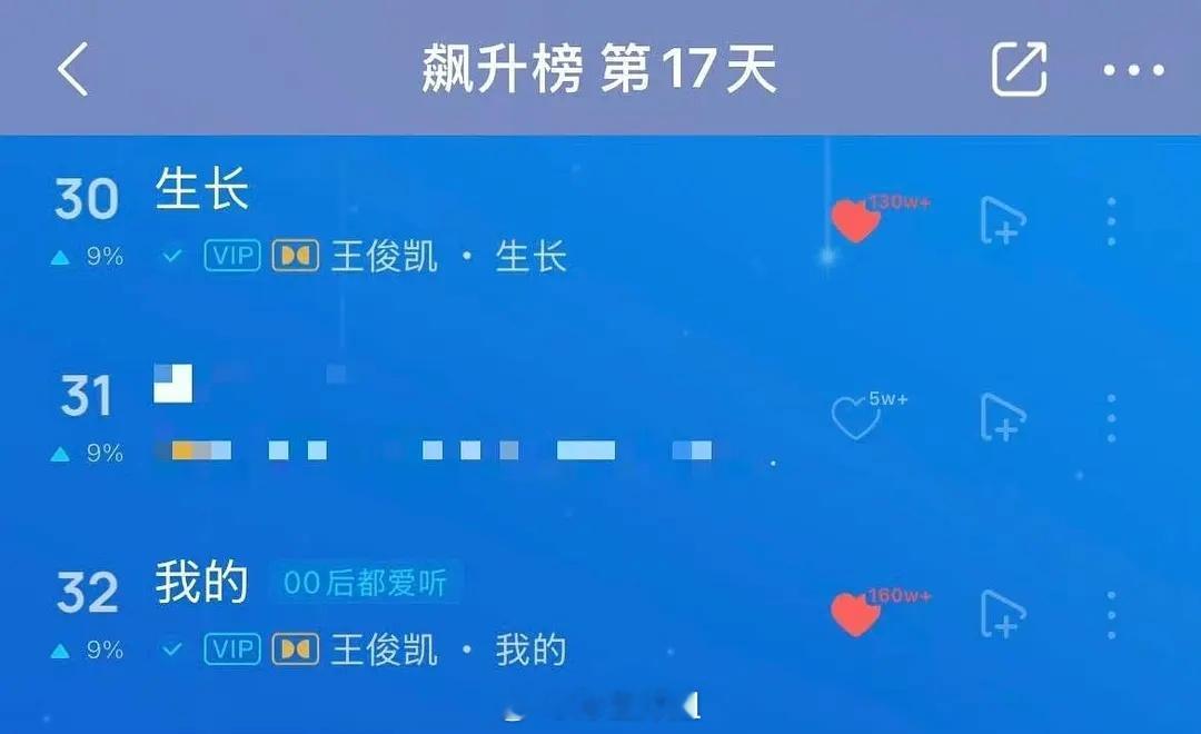 QQ音乐昨天卖了礼盒后飙升榜好多王俊凯的歌啊