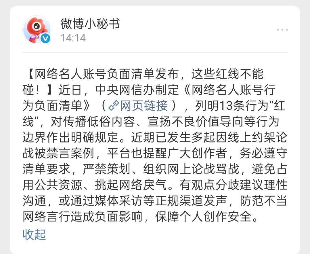 严禁策划、组织网上论战骂战,避免占用公共资源、挑起网络戾气。请大家以后在评论区也自律一点。