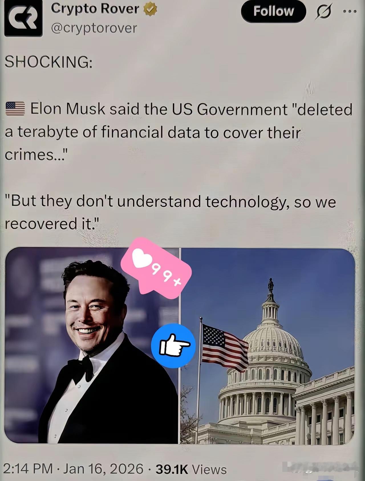 马斯克这波太猛了! 美国当局删掉1TB金融数据, 马斯克说恢复就恢复。 事情的起因,是他牵头的政府效率部(DOGE)在查美国和平研究所(USIP)时,撞上了对方的“毁灭证据”大戏——这帮人直接删掉了1TB的财务数据,想把里面的猫腻埋得严严实实。 要知道这1TB数据可不是小文件,里面藏着USIP大把见不得光的交易,后来被复原后才曝光,居然有给塔利班、伊拉克相关势力付款的记录,还有一堆滥用政府资金的糊涂账。 USIP本来是靠国会每年5500万美元拨款运作的机构,眼看马斯克的团队要查到底,先动手裁人,把不少员工的系统权限掐了,解雇通知都只能发到私人邮箱,见这招没用,就干脆想删光数据一了百了。 可他们千算万算,低估了马斯克的技术底气。这位科技大佬直接在社交平台吐槽,这帮人根本不懂技术,以为删了数据就万事大吉,殊不知在专业团队面前,这种删除纯属白费功夫。 马斯克的团队花了好几天攻坚,还得到了FBI和当地警方的协助,不仅成功进入USIP系统,还把那1TB被删除的数据完整复原,等于把对方的遮羞布硬生生扯了下来。 这事儿可不是马斯克单方面炒作,背后牵扯出更大的风波。他早就盯着美国政府的财务乱象,之前就放话要严查浪费和欺诈,还在公开场合用 chainsaw 象征要狠砍无效开支,这次复原数据就是他整治行动的一部分。 但动了别人的蛋糕,反噬也来得快。没多久就有联邦法官下了临时禁令,禁止美国财政部向马斯克团队提供支付数据,他派去财政部的雇员也因不当言论被迫辞职,后续还有人提起诉讼,质疑他的调查越界。 网友们对此也是吵翻了天,有人直呼“必须有人坐牢”,催着公开证据追责;也有人质疑真实性,觉得光说复原没拿出具体清单,更有人担心数据复原可能牵扯隐私泄露。 其实核心矛盾很简单,马斯克用技术打破了政府机构的“遮丑套路”,但美国政坛的利益盘根错节,他想一查到底没那么容易。 如今这事儿还在拉扯中,没人知道最终会揪出多少人,但马斯克这波硬刚算是把态度摆得明明白白:别想用拙劣的技术手段掩盖罪行,在科技面前,所有猫腻都藏不住。至于后续是真能肃清乱象,还是沦为政治博弈的筹码,只能等着看事态发展了。