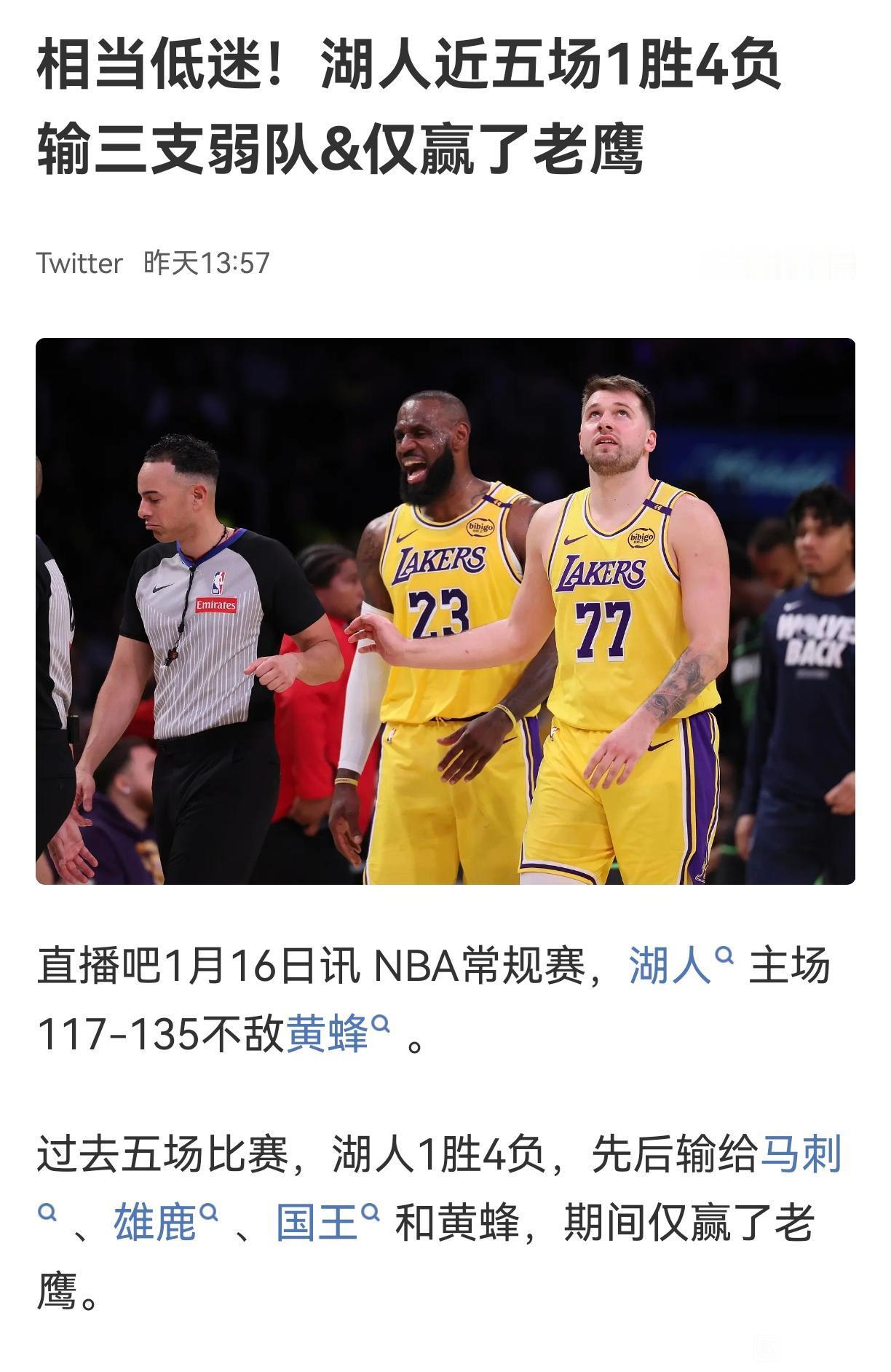 看了半个赛季湖人比赛,一会赢一会输,这就是季后赛第八球队,争冠别想了。 湖人阵容还是不行,总是差一口气。 这几年都是第八左右徘徊,老样子。 都想湖人去争冠,真的没戏。[可怜]