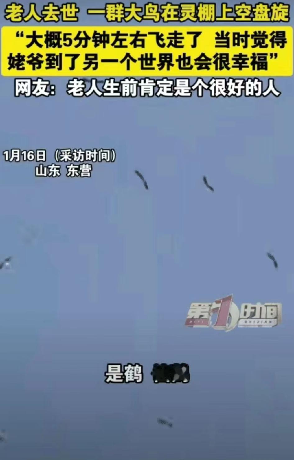 “彻底解释不清了!”山东,91岁老人去世,当天刚要起灵时,灵棚上空突然传来清亮的鸟叫声。有人下意识抬头望去,随即轻声惊呼:“是仙鹤!” 闻声抬头的众人看到,一群仙鹤正在空中缓缓盘旋,翅膀扇动得从容又平稳,一声声鸣叫穿透了嘈杂的人声,让现场瞬间安静下来。大家都屏住呼吸望着,心里满是惊讶与感慨。 这群仙鹤在灵棚上空停留了足足5分钟,直到老人的骨灰被小心翼翼地捧出来,它们才振翅朝着远方径直飞去,没再回头。 老人的孙子说,姥爷一辈子待人实在,村里不管谁家有难处,他总会第一时间伸手帮忙,从没计较过自己的得失,一辈子都在默默积德行善。看到这样的景象,他心里既欣慰又温暖,觉得这是姥爷应得的一份送别。 乡亲们也纷纷感慨,活了大半辈子,从没见过这样的场景,都说这是老人生前的善行换来的特殊告别。 其实这未必是什么玄妙的征兆,更多的是人们在悲痛之余,将对老人的不舍与敬意,寄托在了这群恰巧出现的仙鹤身上。仙鹤本就是祥瑞的象征,这份偶遇,成了慰藉人心的温暖寄托。它让我们看到,善良的人总会被记挂,哪怕是生命的尽头,也能收获一份带着暖意的送别。