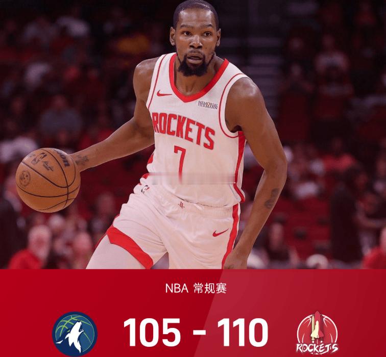 25/26赛季NBA 常规赛,火箭对阵森林狼。双方全场战罢,火箭109-105战胜森林狼。杜兰特得到39分4板7助率领火箭成功取胜,兰德尔砍下39分4板2助难阻失利。