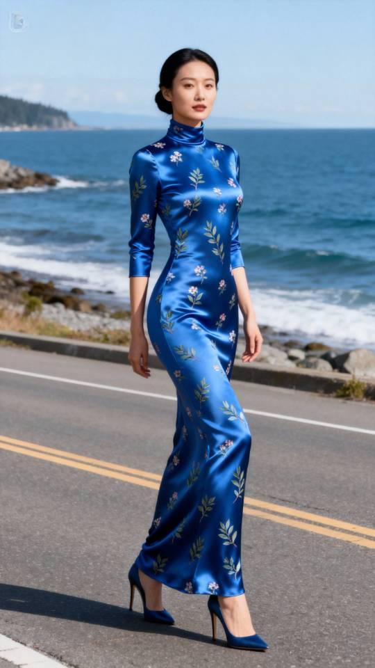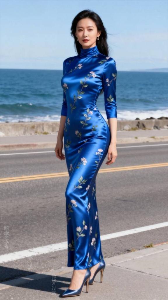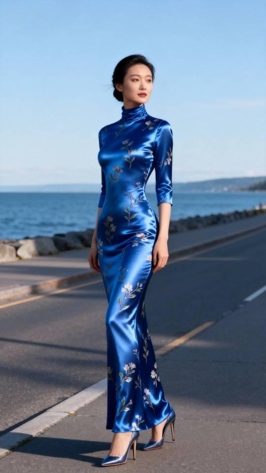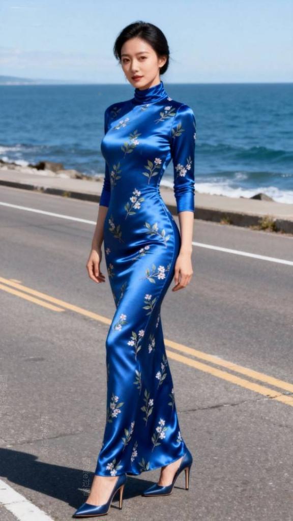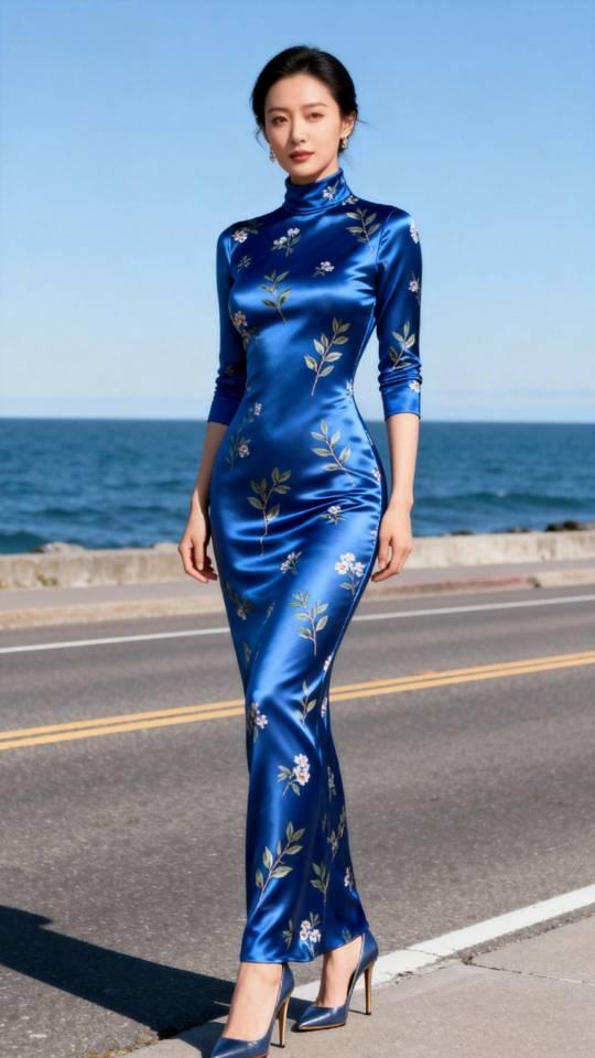 今年冬天的不同 身穿蓝色长裙的她与海天一色相映成趣。连衣长裙 气质美女 美女壁纸