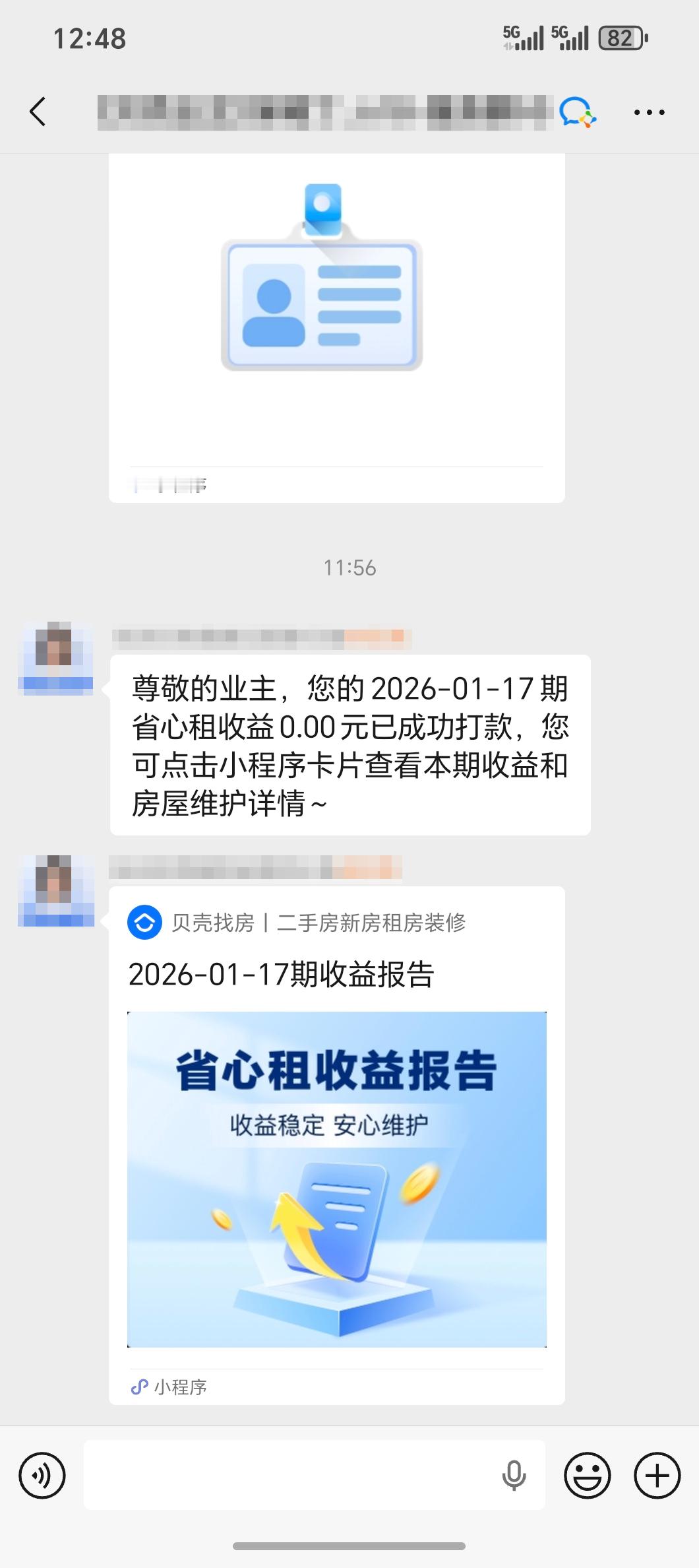 感谢贝壳给我发来的0元收益提醒同一套房子从20年到现在租金越来越低从收益率的角度来说肯定不算好生意