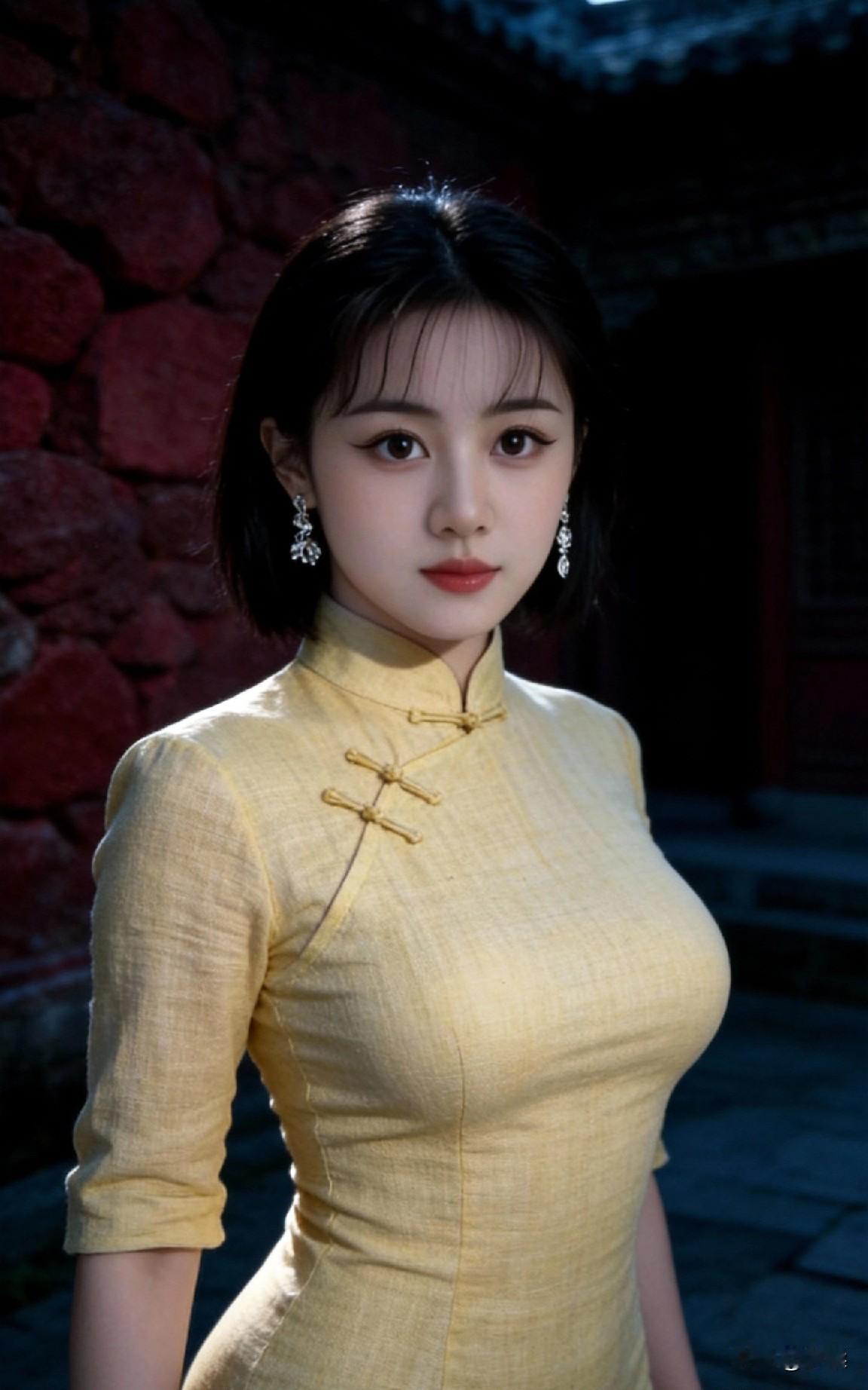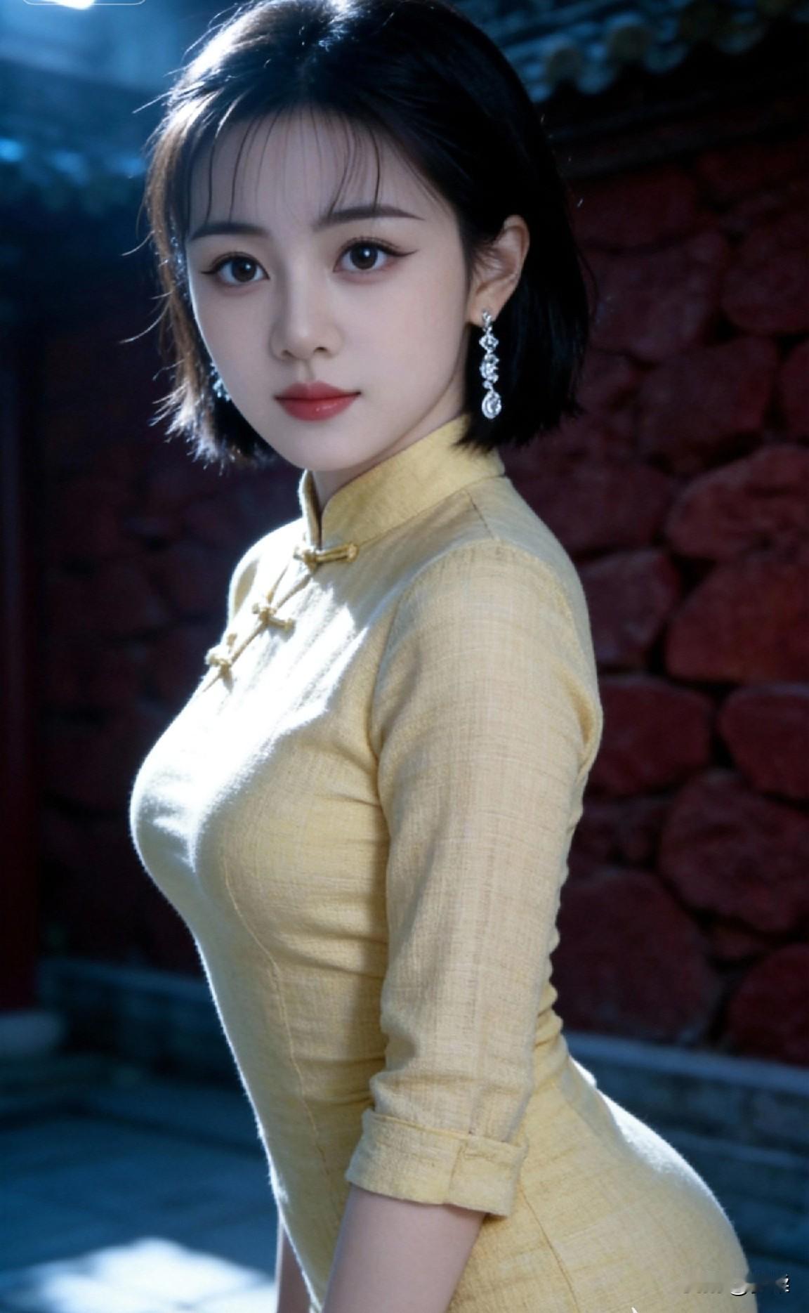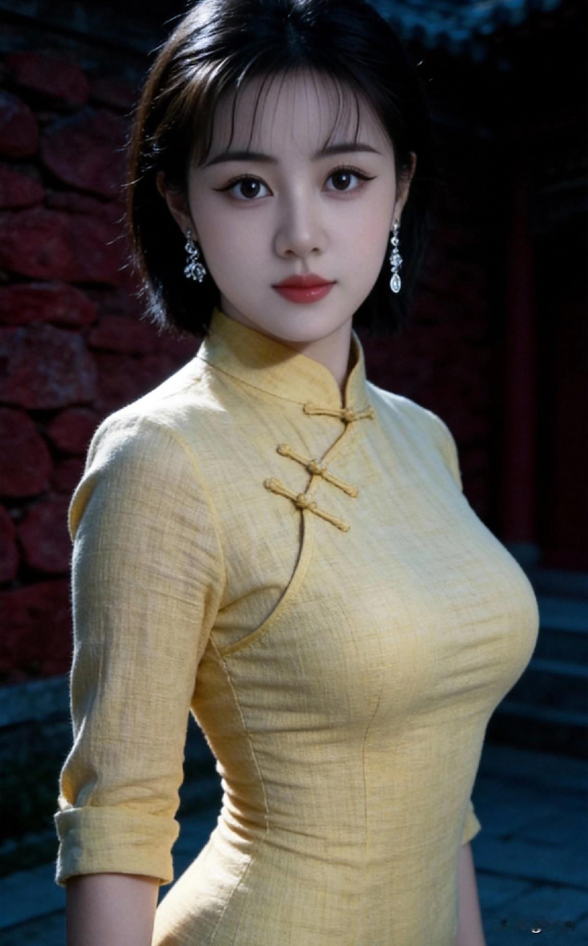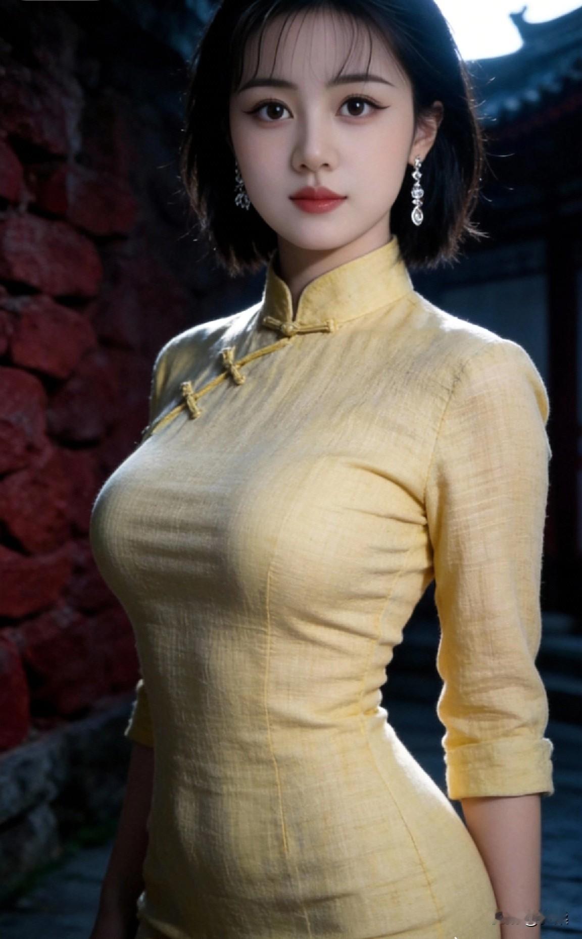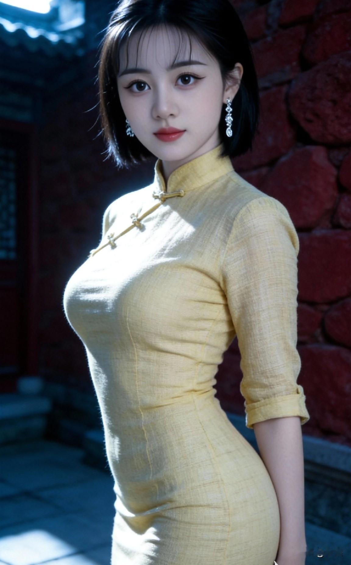 优雅古风少女,一袭黄色旗袍,尽显古典韵味