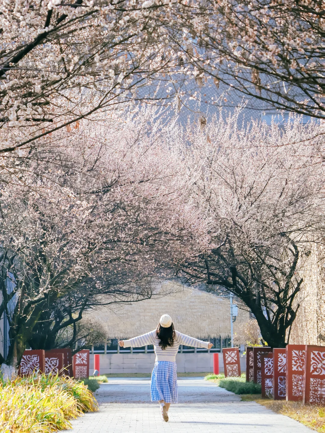 1.16实拍!!!! 人少又免费的青梅花隧道又开爆了… 直接盛花期了 两侧开满了青梅花宛如在人间仙境 📍成都非遗博览园 🚇地铁4号线(非遗博览园B口) 出来走到麦当劳二号门进 进来以后用 高 德 🧭(卧龙斋)就到了