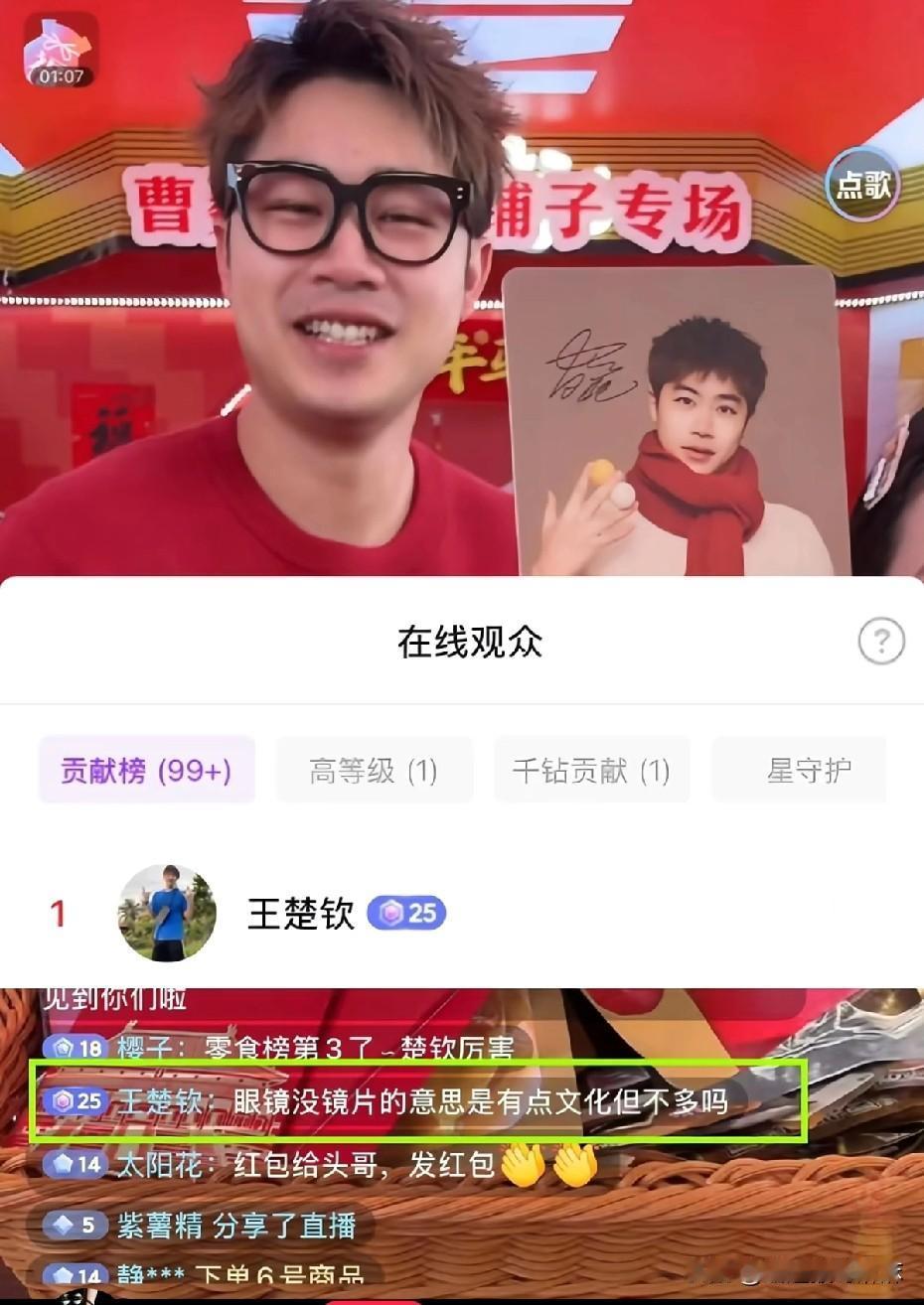 王楚钦是体坛林更新吧,这嘴真是太有梗了![偷笑] 人家今天曹魏有盐津铺子的直播,头哥空降直播间,又是送跑车,又是送热气球的,直接飙升榜一大哥。 戴着无镜片眼镜的草莓熊,看着直播间人数飙升,笑得合不拢嘴。 大家再一看评论区,头哥水灵灵调侃出现了!“眼镜没镜片的意思是有点文化但不多吗” 哈哈哈,不得不说,头哥的嘴真是一如既往的幽默!和他做朋友应该不无聊吧! 草莓熊:给我跑车又给热气球的榜一大哥,说啥都对哈!