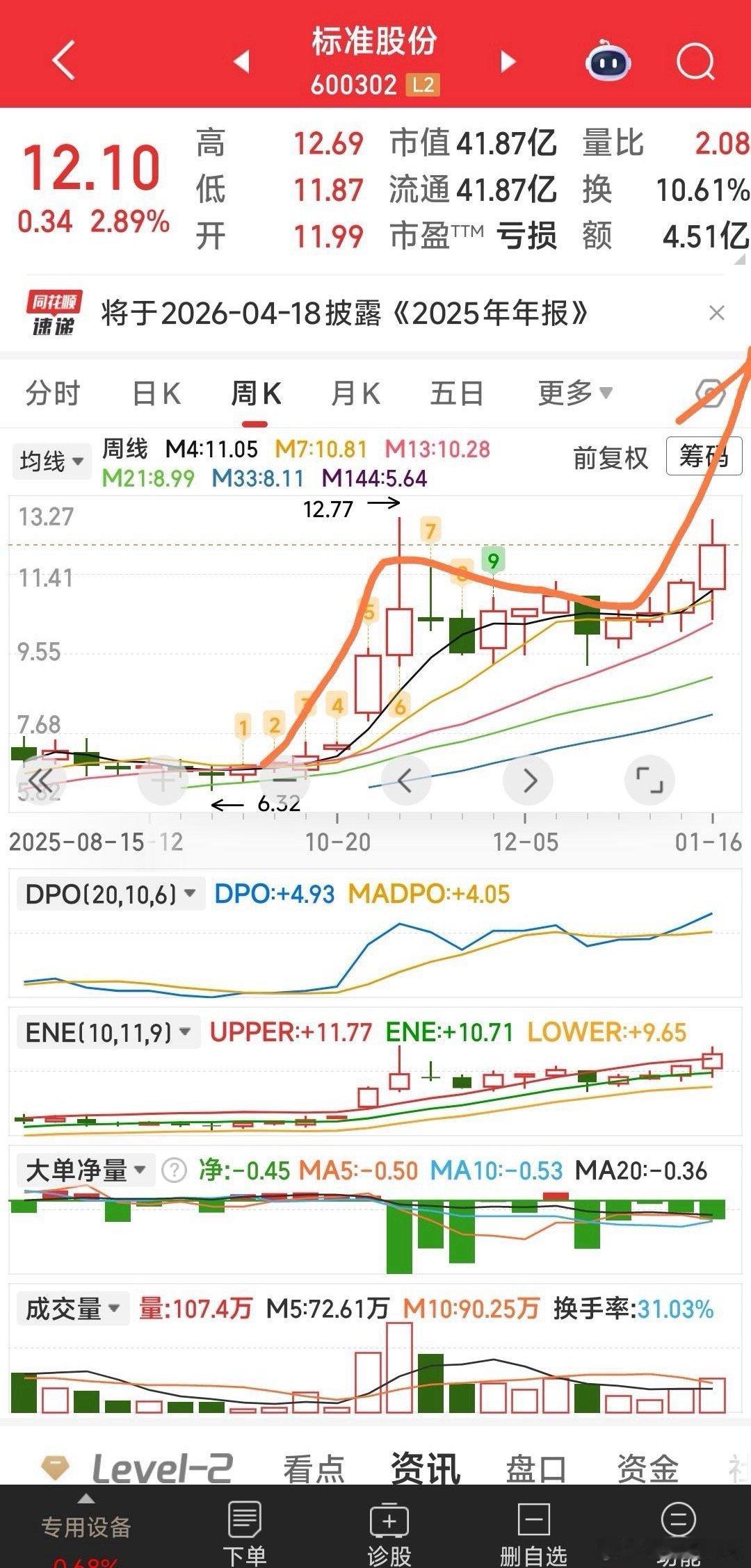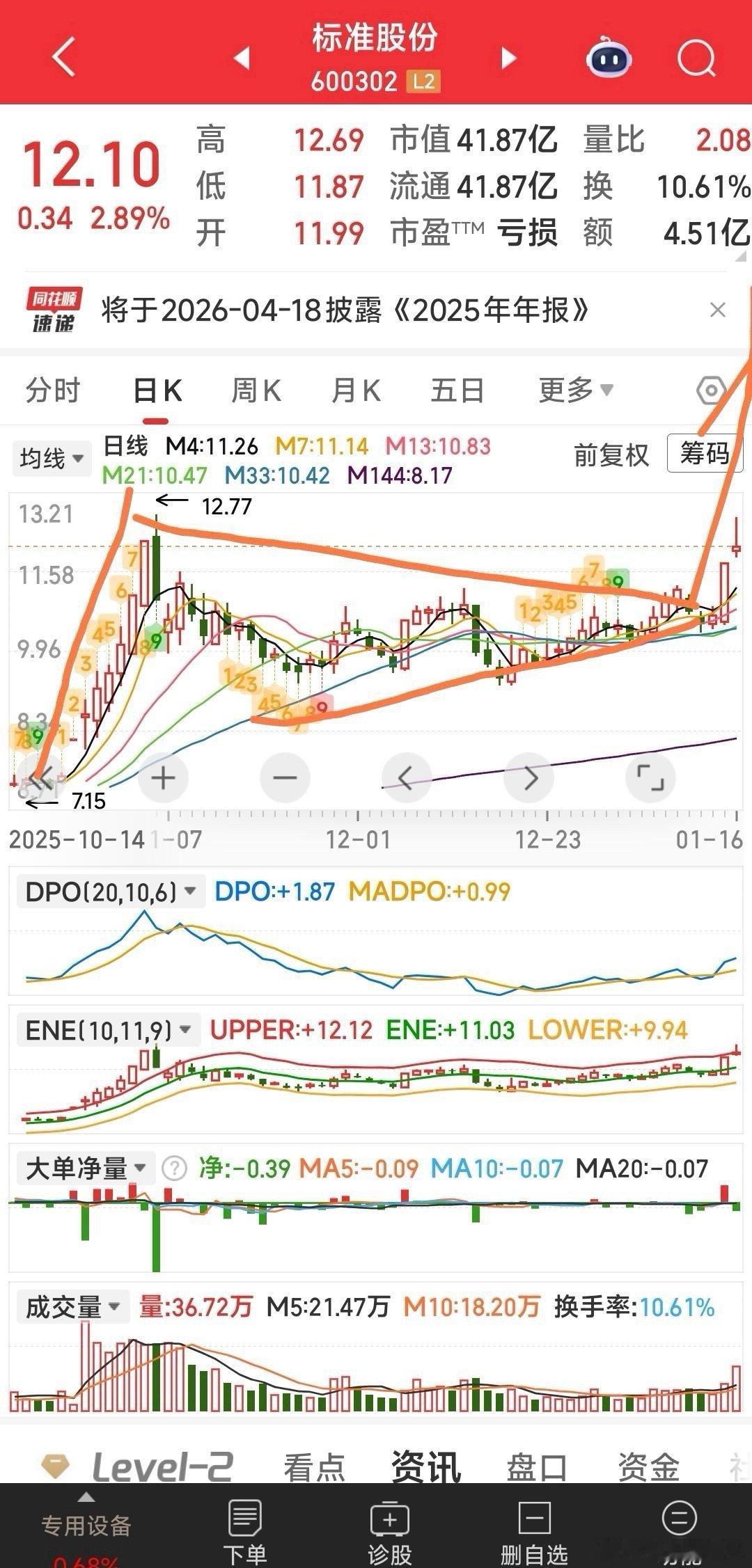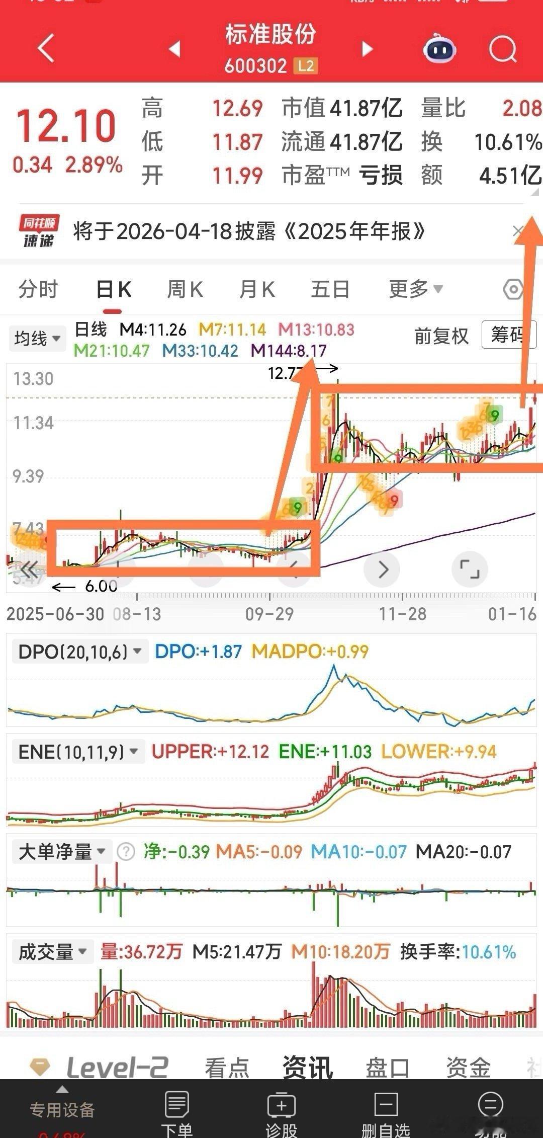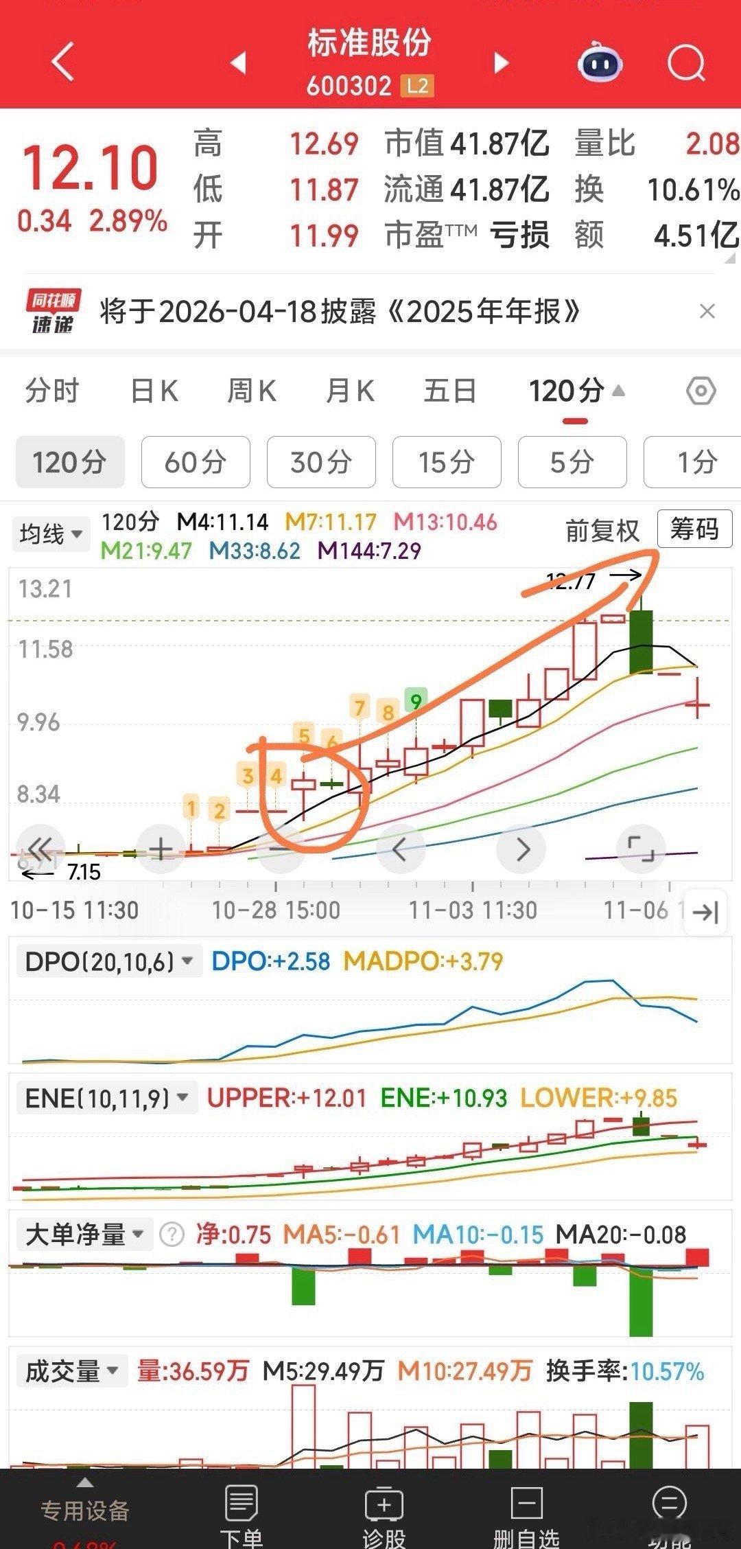 【再画个方向图】标准股份我再画个方向。图1是三角整理后的N起图。图2周线老鸭头。图3图4为120分钟K线走式。图五为缩小的日K线第二阶段大箱底完成后的突破。特别声明:想走的人尽管走,没人栏着你!想看的一起看,有福共享。以现12.1元为价(我们重点提示建仓价在10.5元左右),以后只跟踪不再提示“加仓”,避免以后成本价混乱,无法点评跟踪。