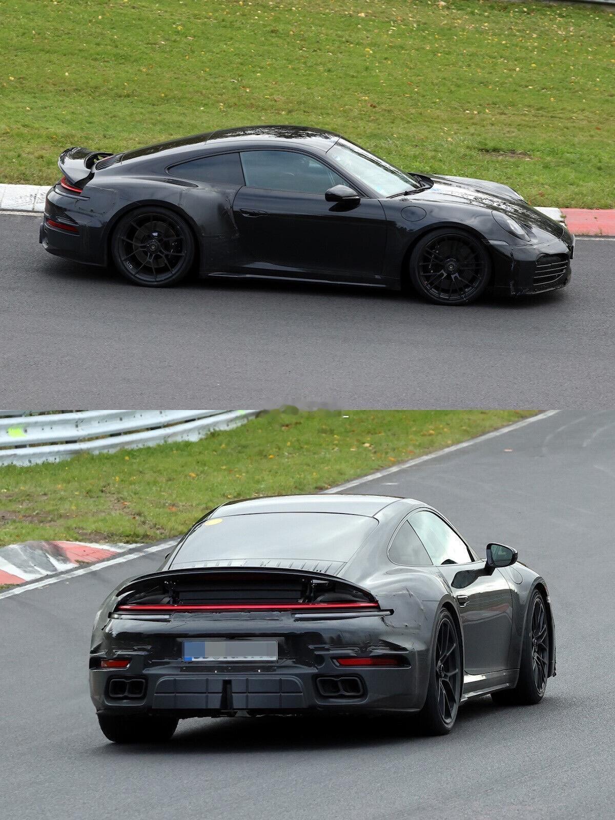 911涡轮也有低调版?无尾翼的猛兽,最近在纽北,一台特别的保时捷911测试车引起了注意。它看起来像是旗舰性能版911TurboS,但似乎又有些不同。最大的变化在车尾。那个标志性的大尺寸固定尾翼消失了,取而代之的是一个更低调的可变式尾翼,不用时可以收纳起来。后翼子板上彰显Turbo身份的硕大进气口也被面板盖住,侧面的出风口也部分封闭。车头设计也更接近普通版,而非GT车型那种张牙舞爪的风格。保时捷911