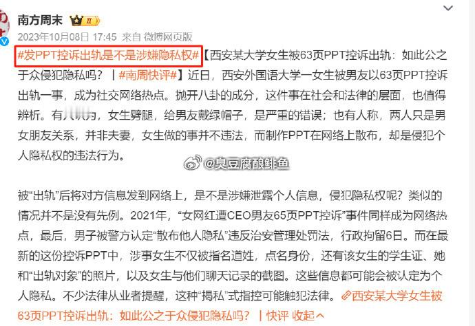 女子败诉后连续5天向出轨丈夫道歉问题来了,男性的隐私算不算隐私,我们可以在女生做16页ppt举报男友出轨 里面看到挖掘机技术强。鼓励挖掘出轨信息的。我们也可以看到女性被举报以后,她们维护女性隐私权的控诉,甚至还有媒体直接双标,如果你把这件事这么理解那么就简单了。女出轨,我们用法律男出轨,我们用道德,毕竟法律是最低限,道德可以无限拔高。女的出轨可以用“拒绝出轨羞耻”来遮掩。男的出轨就要直接上升到全民狂欢。这一切到底是为什么?是双标?是特权?我不得而知。
